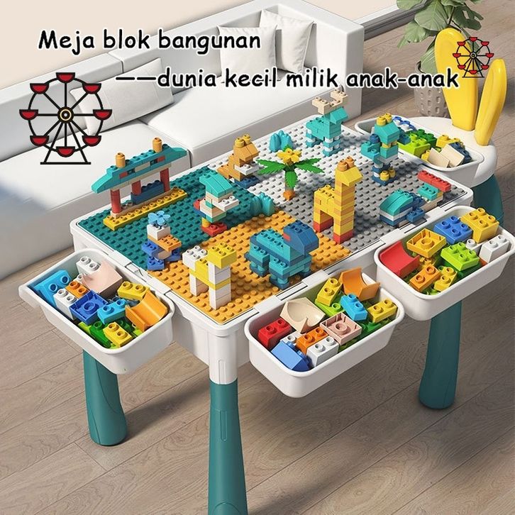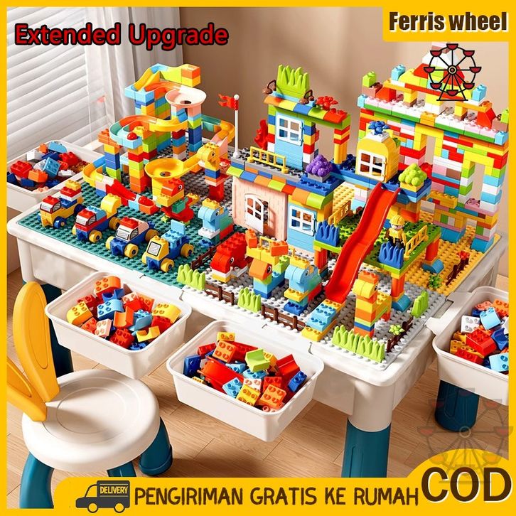 Ferris Wheel 356pcs Anak-anak Multifungsi Blok Meja Dengan Bangku/Belajar Meja Dan Kursi/Besar Membangun Set