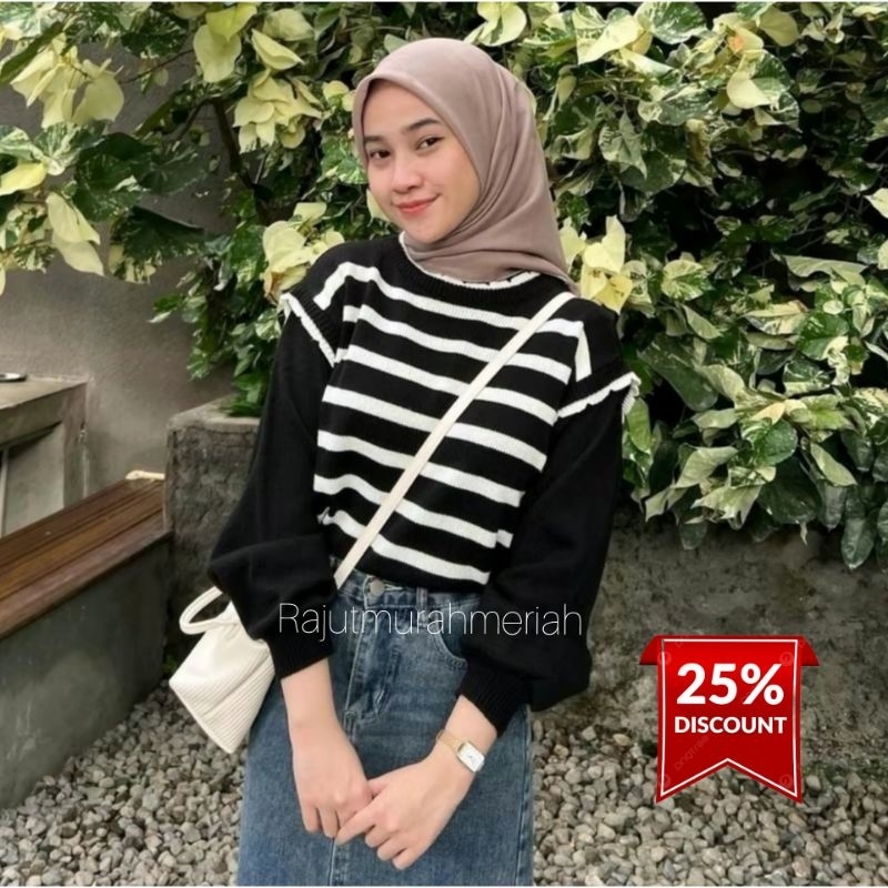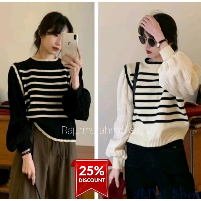 RMM Atasan Rajut Wanita Lengan Panjang Lengan Balon Rajut Terbaru Lengan Balon