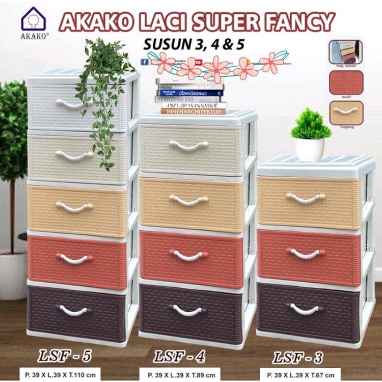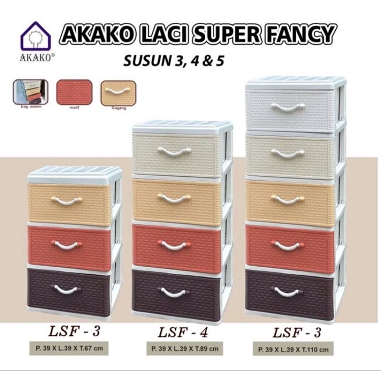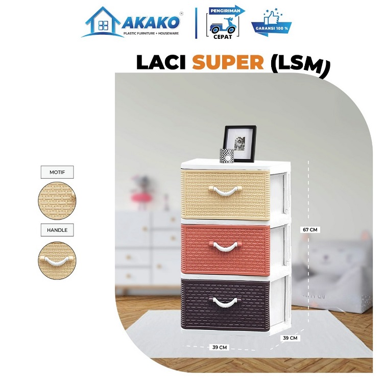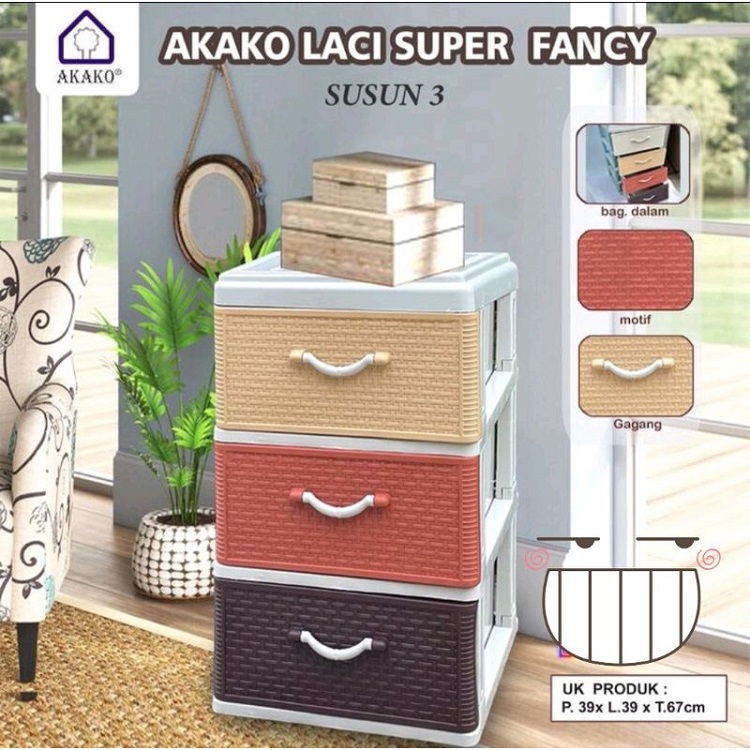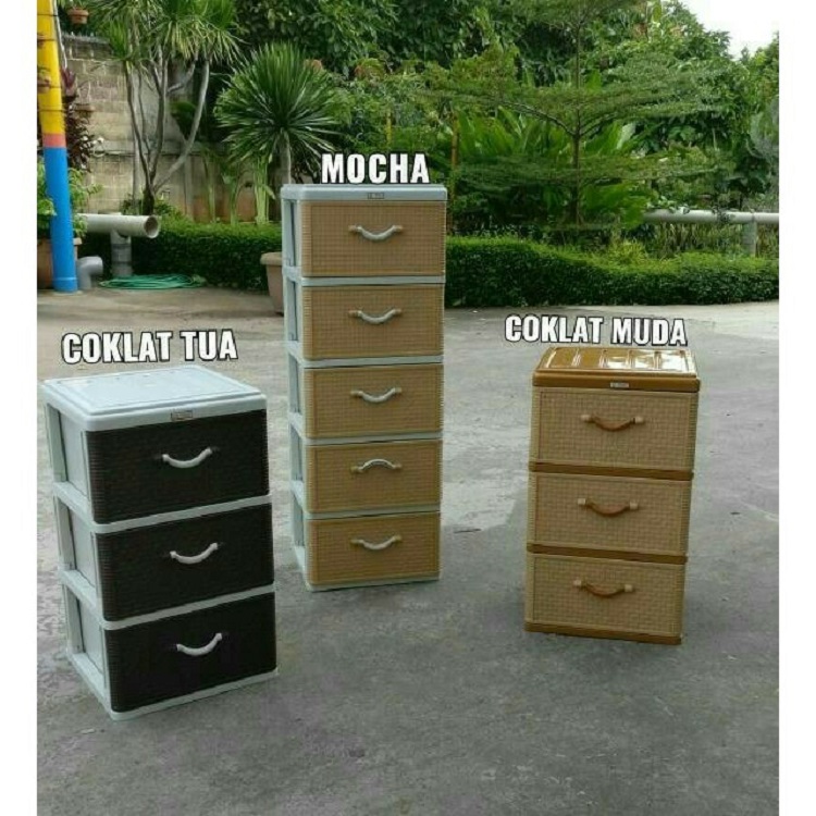 AKAKO - Lemari Laci Plastik motif Rotan 3 Susun - NEW ITEM (LSM 3)
