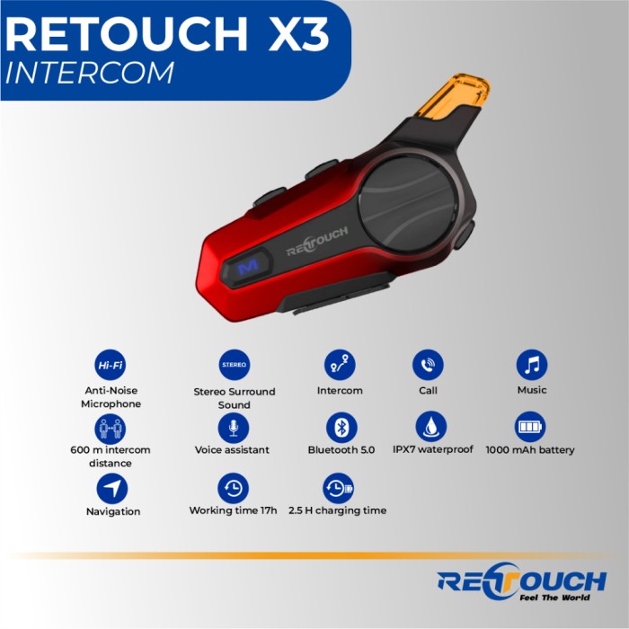 INTERCOM RETOUCH X3 ORIGINAL | HEADSET HELM BLUETOOTH - SILVER