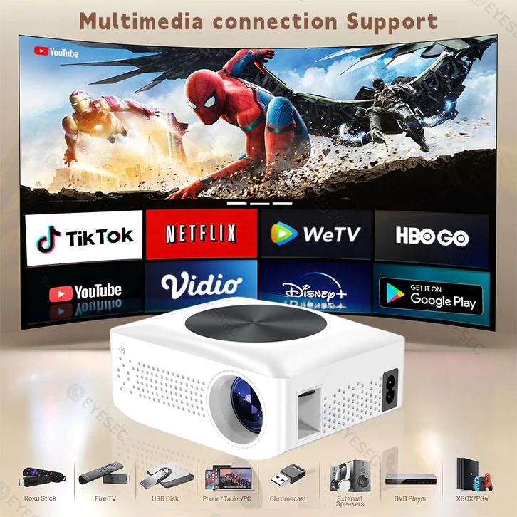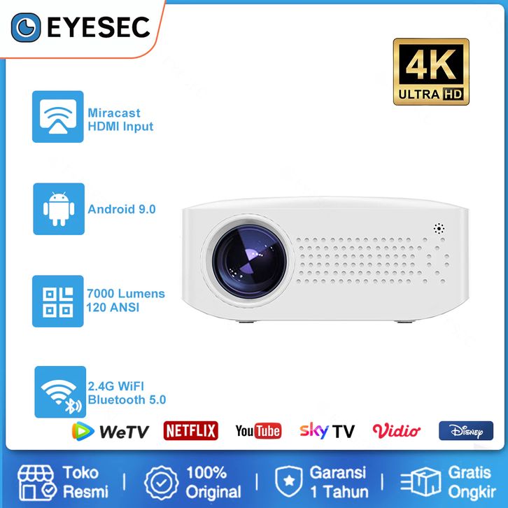 EYESEC Proyektor Mini 1080P Android 9.0 4K Projector 7000 Lumen 2G RAM 16G ROM / proyektor mini / proyektor android