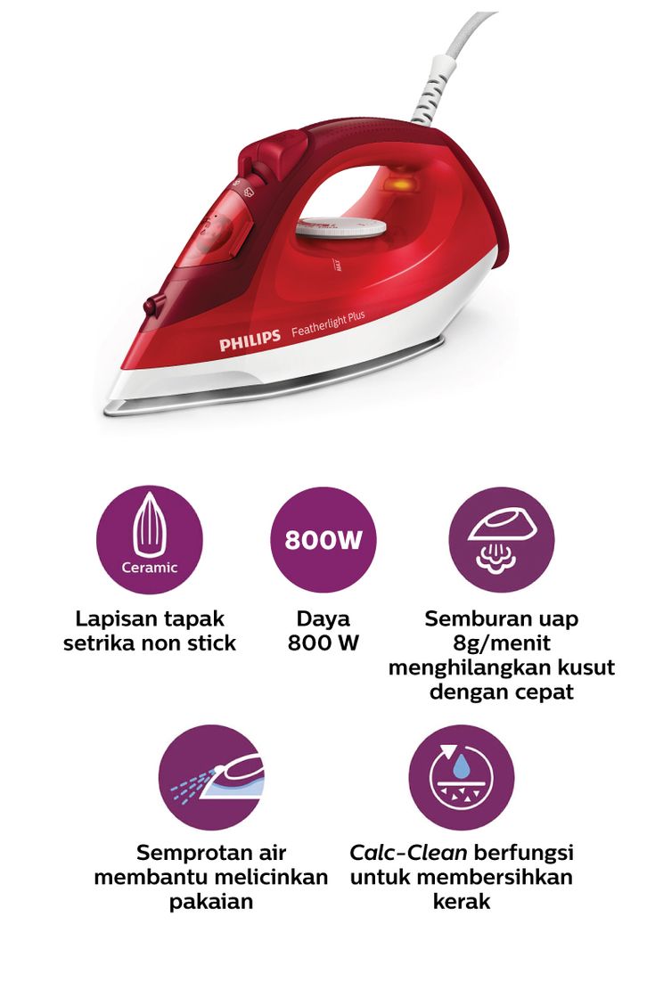 SETRIKA UAP PHILIPS DENGAN TAPAK NON-STICK STEAM IRON GC 1424 BEST SELLER