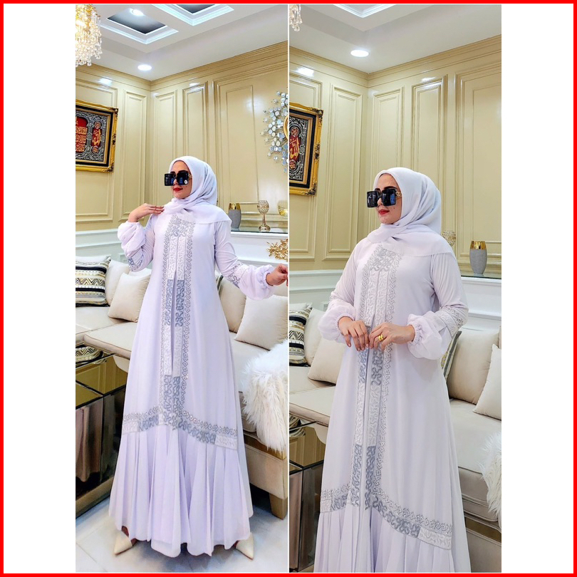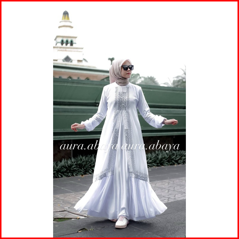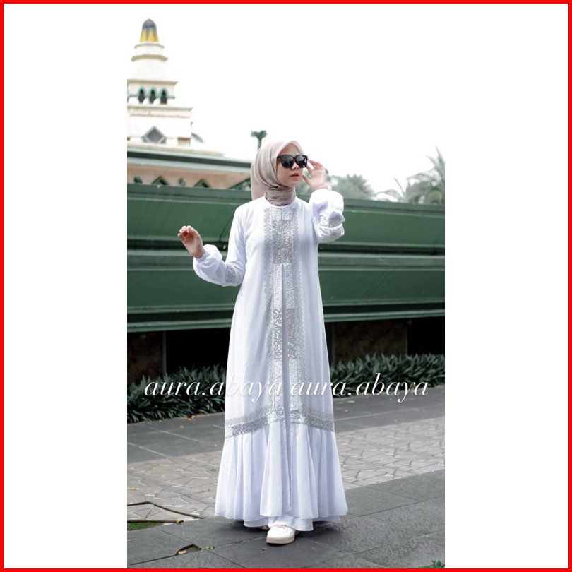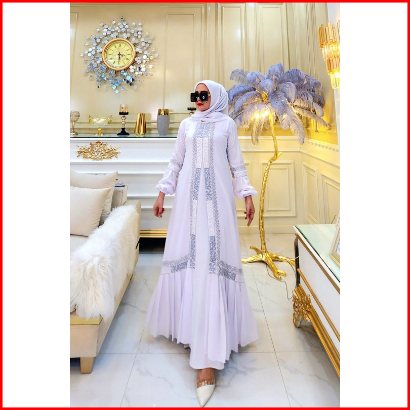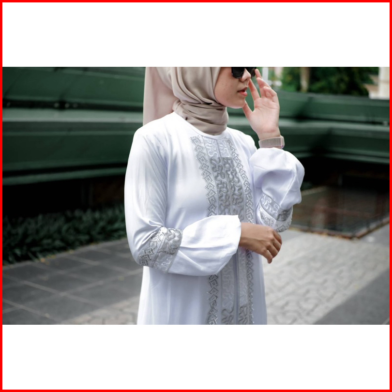 Gamis Abaya Turki Putih Umroh Haji Bordir Edlyn Dengan Payet Swarowski