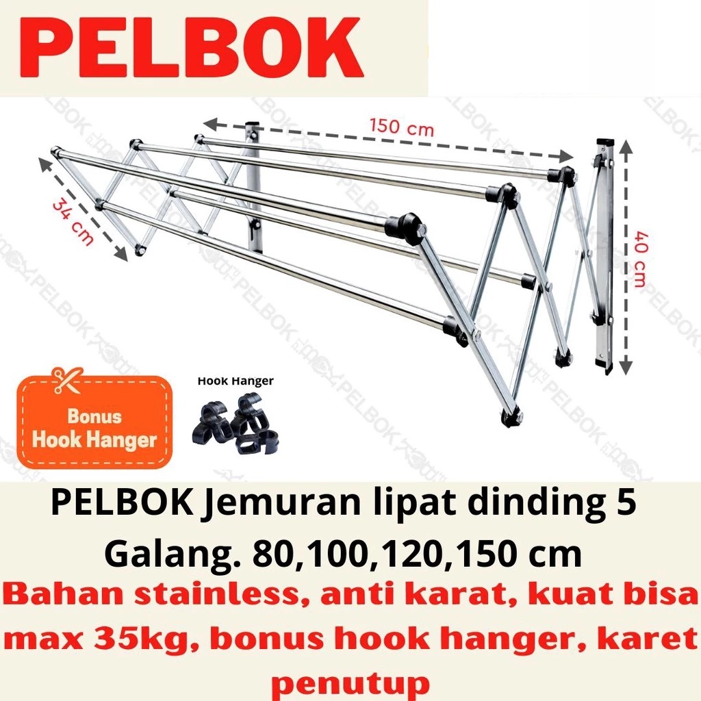 PLBOK DOUBLE JEMURAN BAJU PAKAIAN DINDING LIPAT STAINLESS STEEL RAK JEMURAN BAJU 80 100 120 150