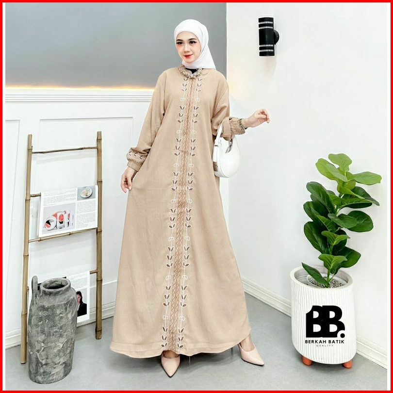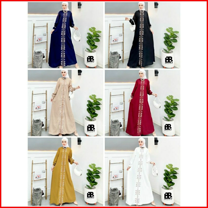 Gamis Bordir Bunga Timbul Bahan Crinkle Gamis Azizah Mewah Terbaru Termurah Gamis Bordir Best Seller