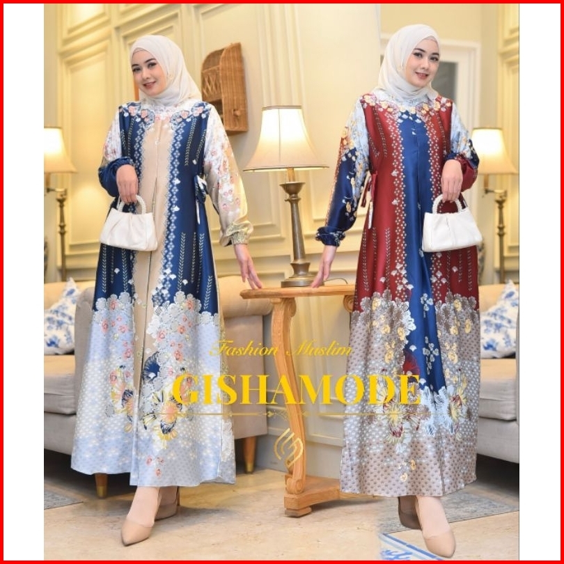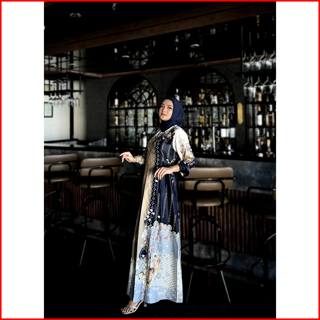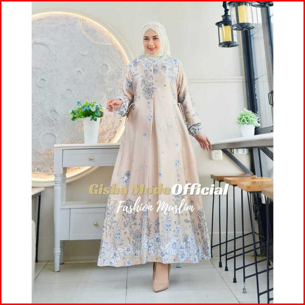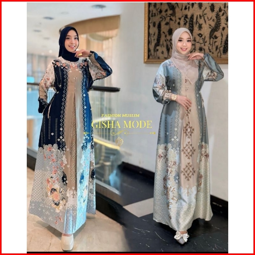 Dress Gamis Motif Bahan Silk Premium Gamis Butik Terlaris Ukuran Standar Jumbo Motif Bunga Mewah