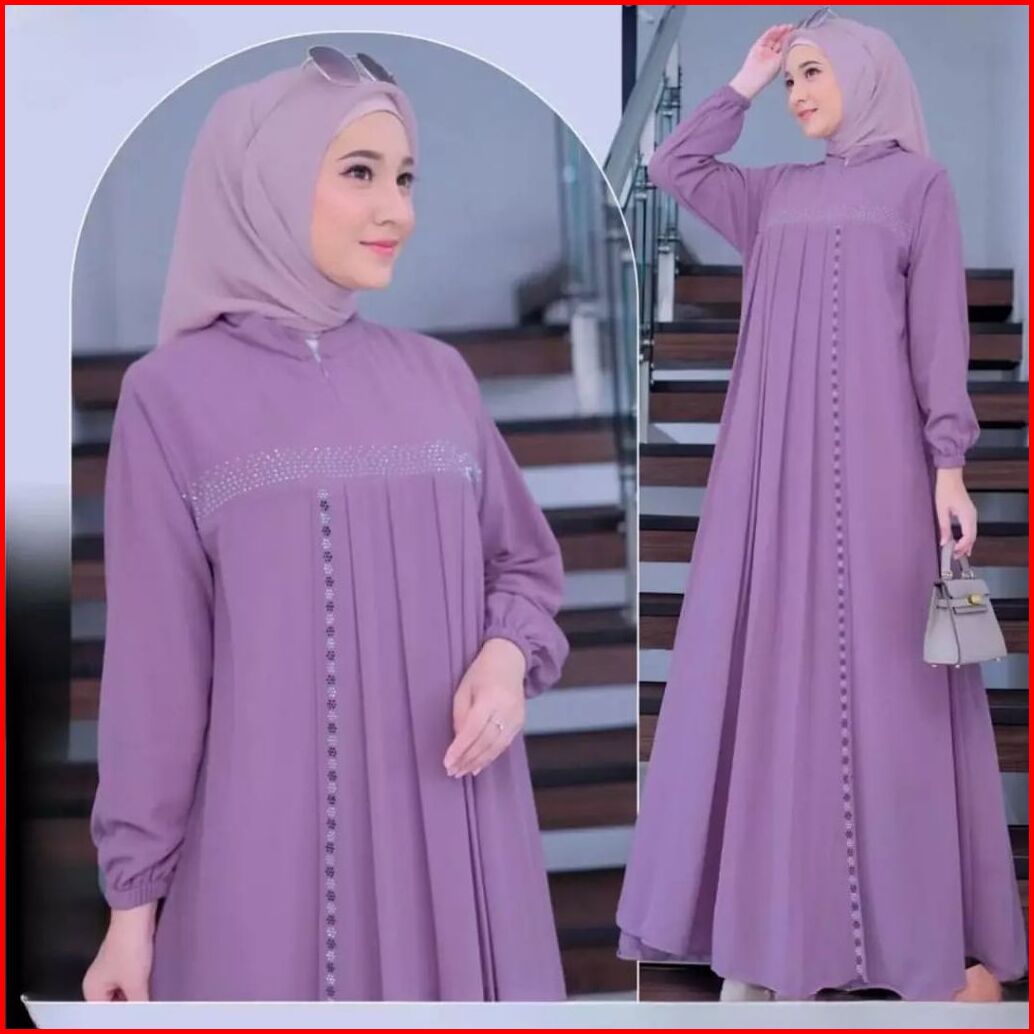 Gamis Azzahra Terbaru 2024 Payet Swarosky Mewah Dress Kondangan Kekinian Bahan Ceruty Pakaian Muslim