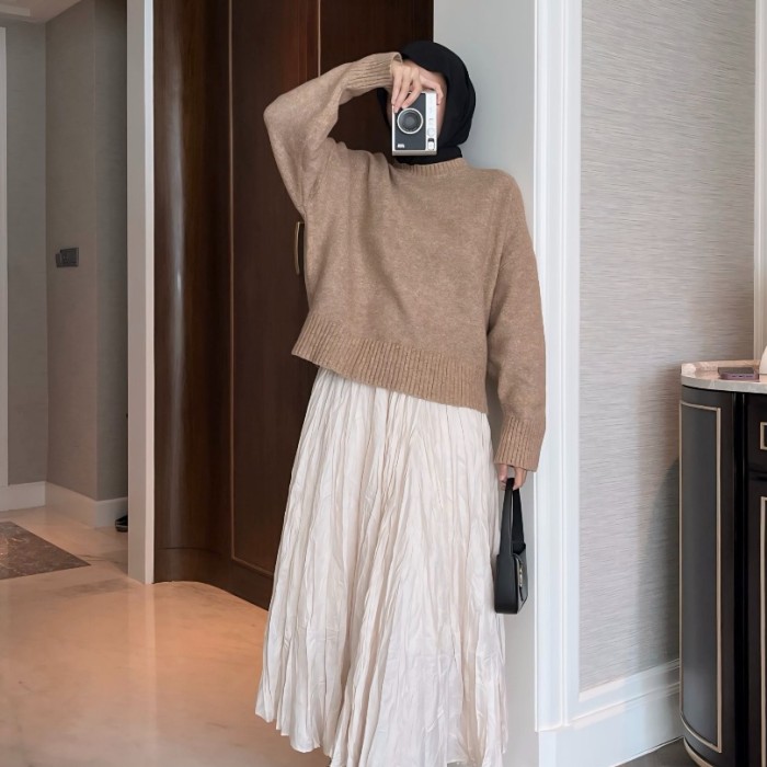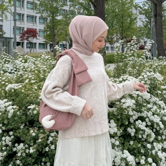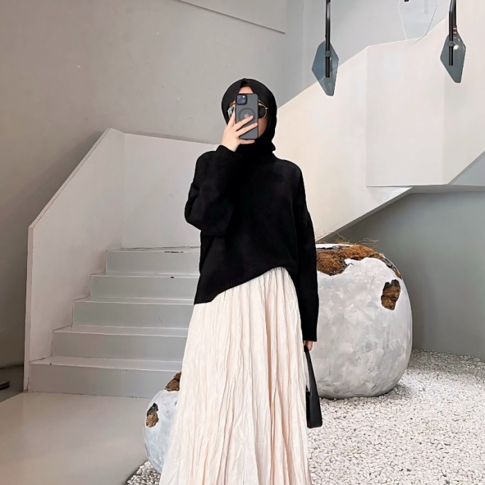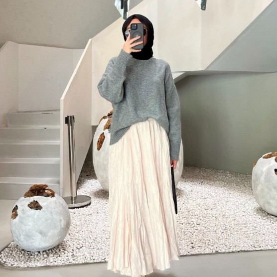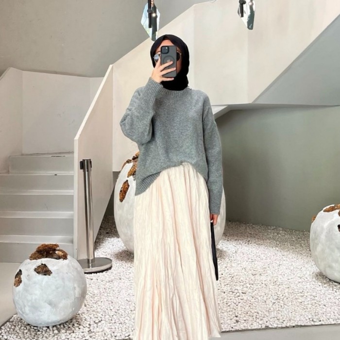 GONEGANI OFFICIAL - BLOUSE RAJUT POLOS WANITA AIGO SWEATER - GLASS GREY