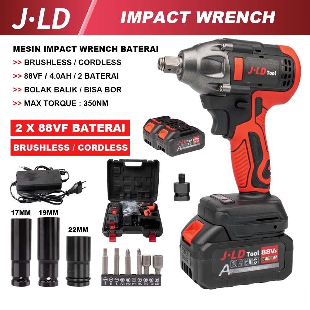 JLD Impact bor baterai 88VF biru impact wrench 13mm mesin bor impact bor cas impact baterai jld 88v ori