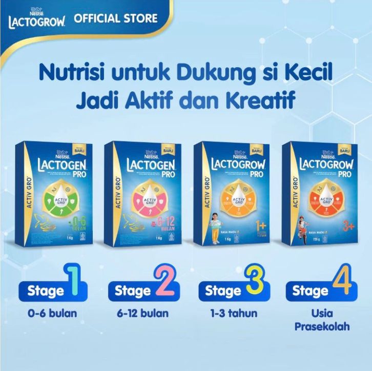 LACTOGEN PRO 0-6 bulan & 6-12 Bulan LACTOGROW PRO 1+ [1-3 tahun] & LACTOGROW PRO 3+ [3 tahun] VANILLA / MADU 1 KG
