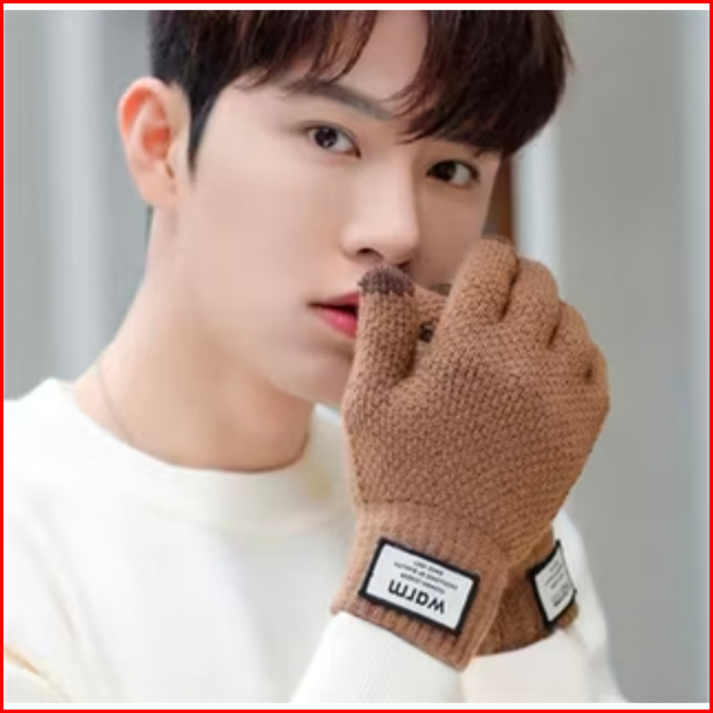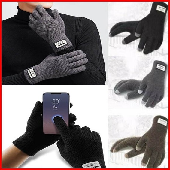 Sarung Tangan Rajut Pria Bahan Wool Tebal Hangat Untuk Winter Musim Dingin
