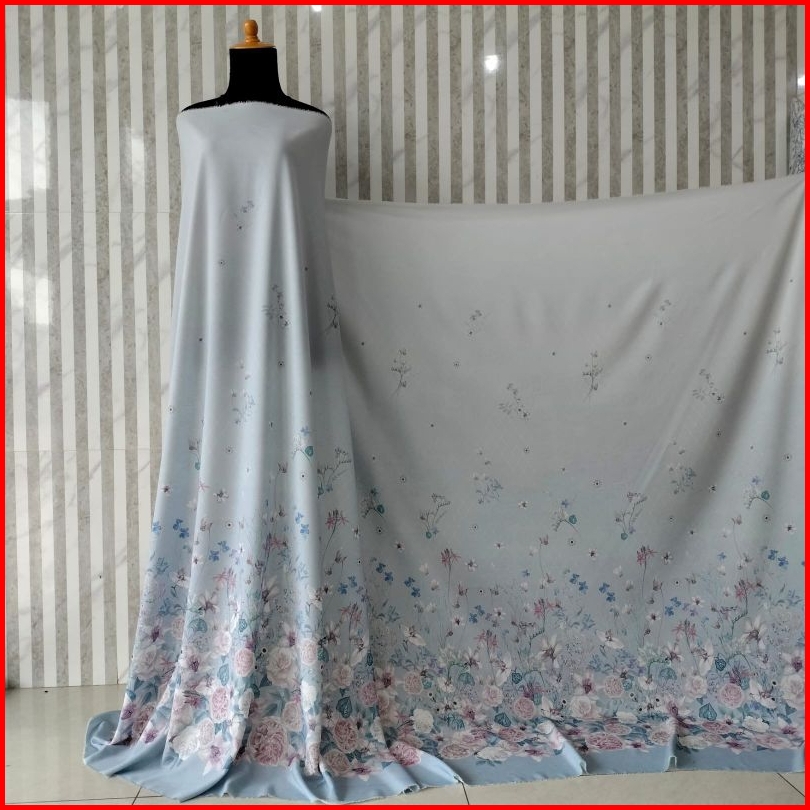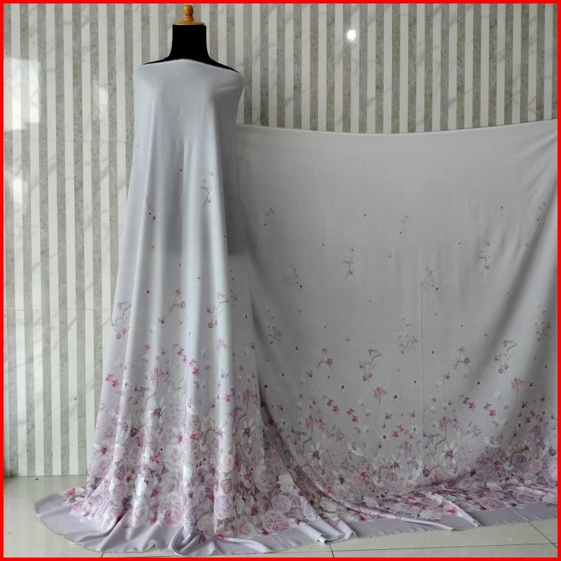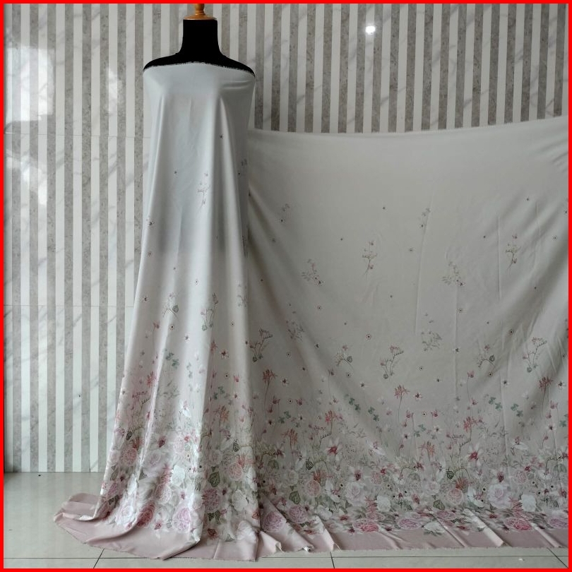Kain Meteran Bahan Premium Romario Silk Motif Sakura Spring Natalie Dan Martha