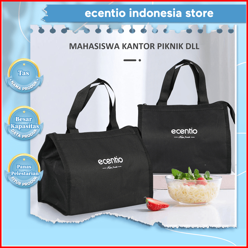 Ecentio Tas Bekal Pola Oxford Cloth Lunch Bag Tas Bekal Jumbo Anti Air Makanan Bento Elegan Aluminium Foil Lunch Cooler