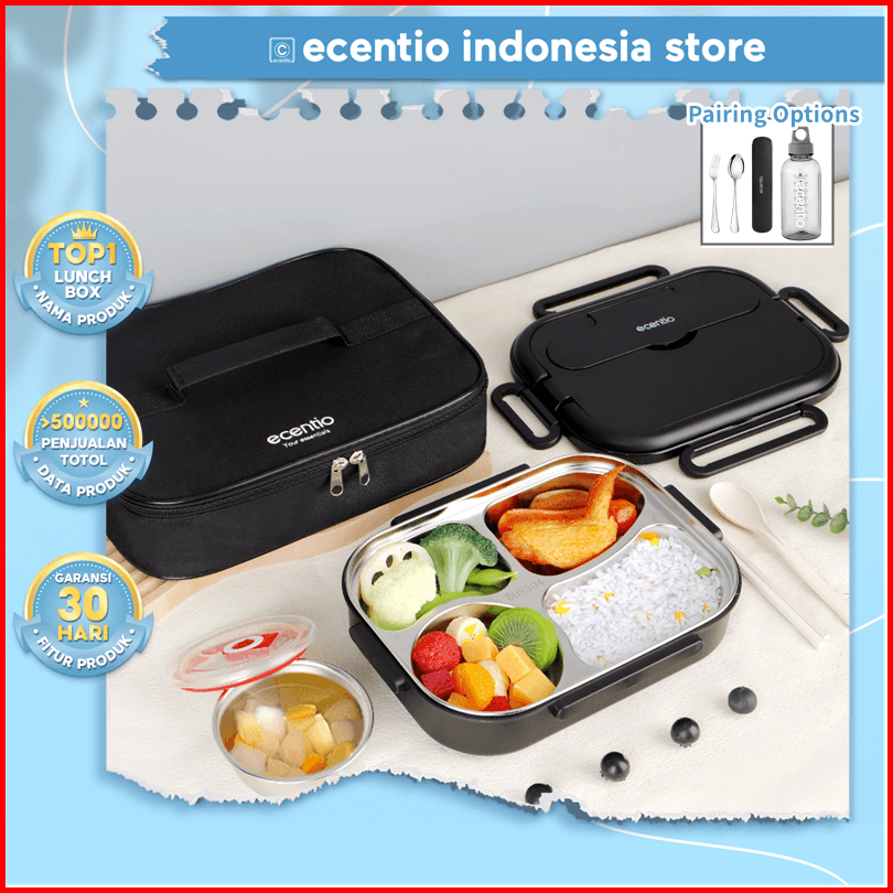Ecentio Lunch Bag Tas Bekal Makanan Set Tas Makanan Totebag Tas Kecil Tas Karakter Tas Piknik Kotak Bekal Stainless Anti