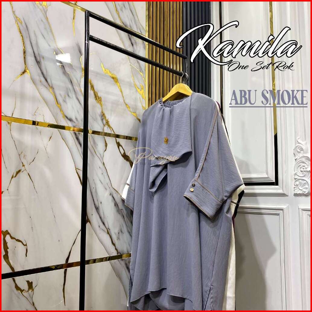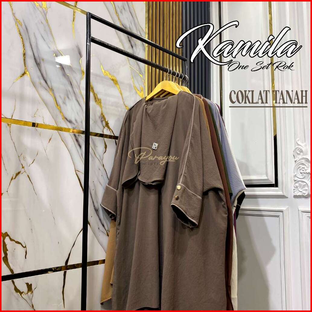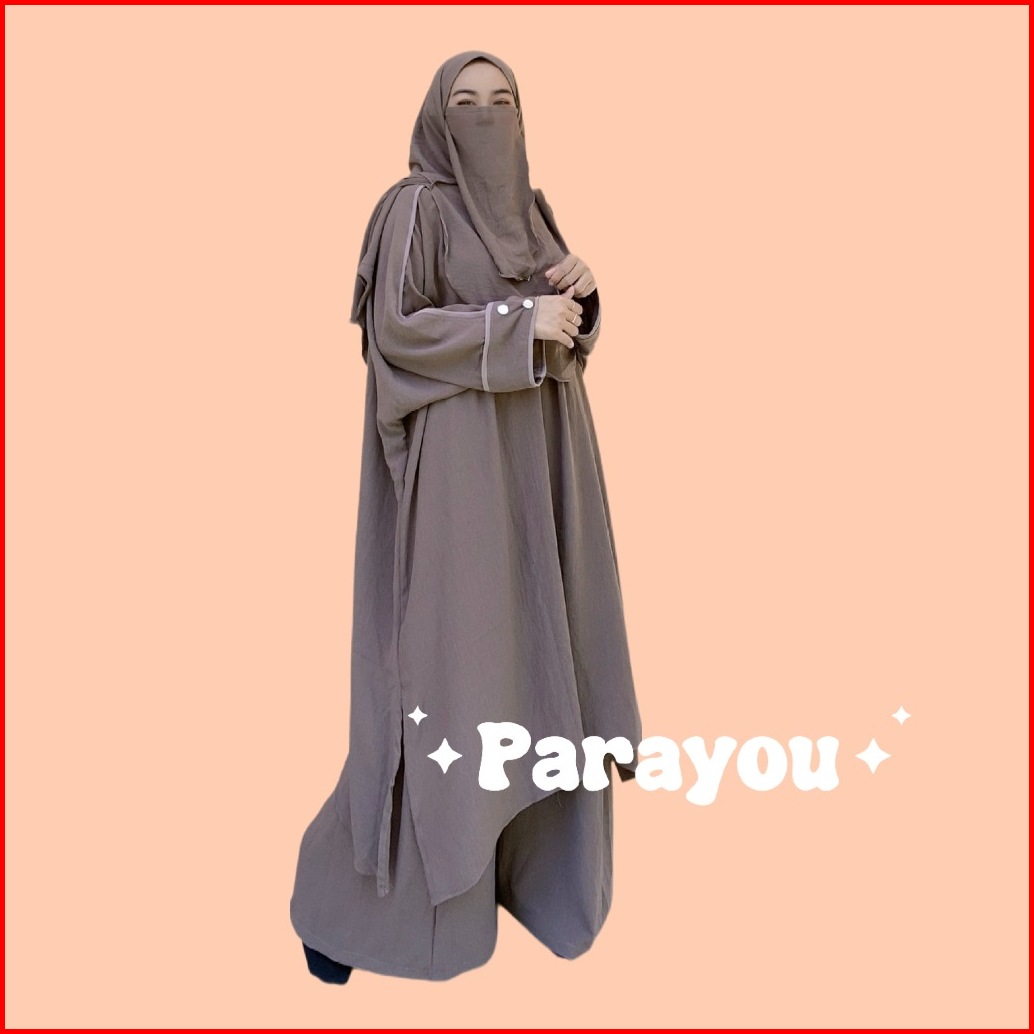 Parayou - Kamila One Set Hijab Kaftan Rok Setelan Gamis Panjang Umroh Kajian Seragaman Wanita Muslimah Syar I Crinkle Ai