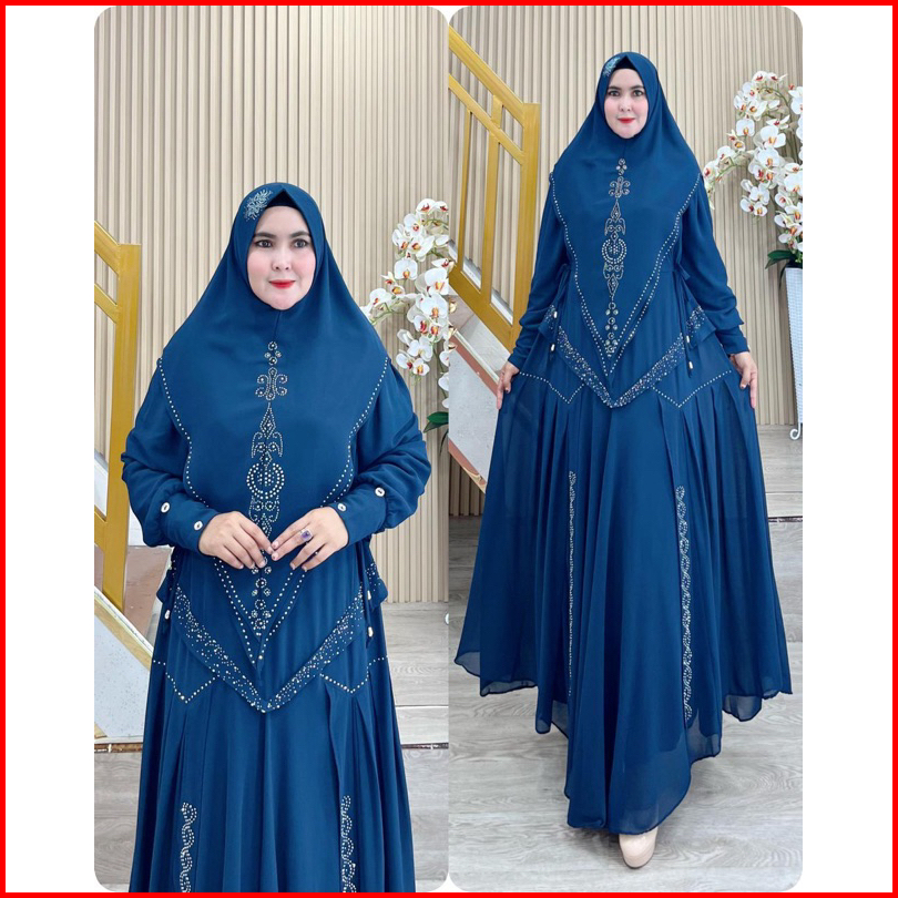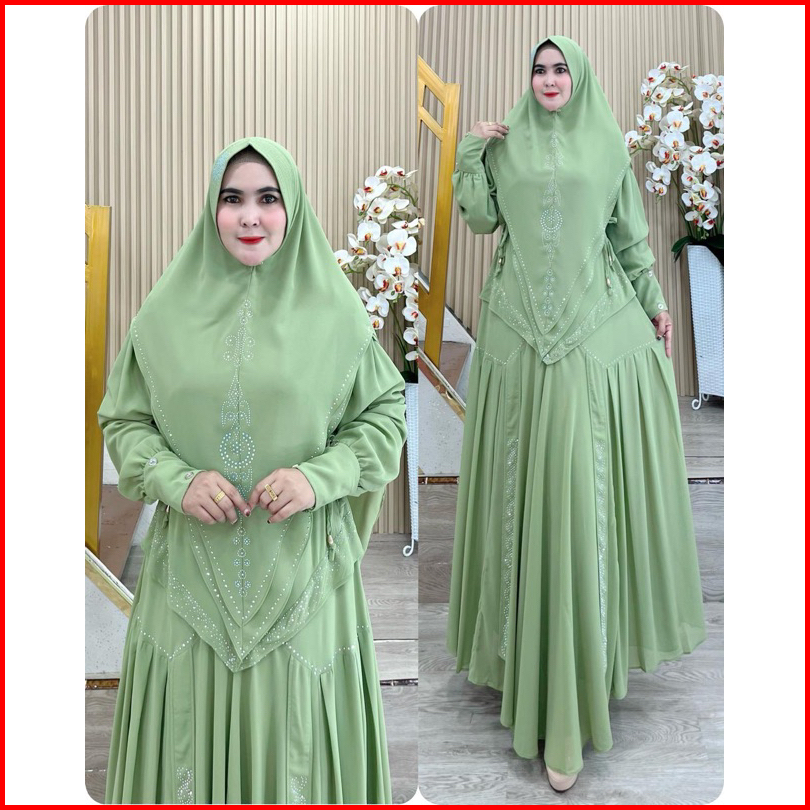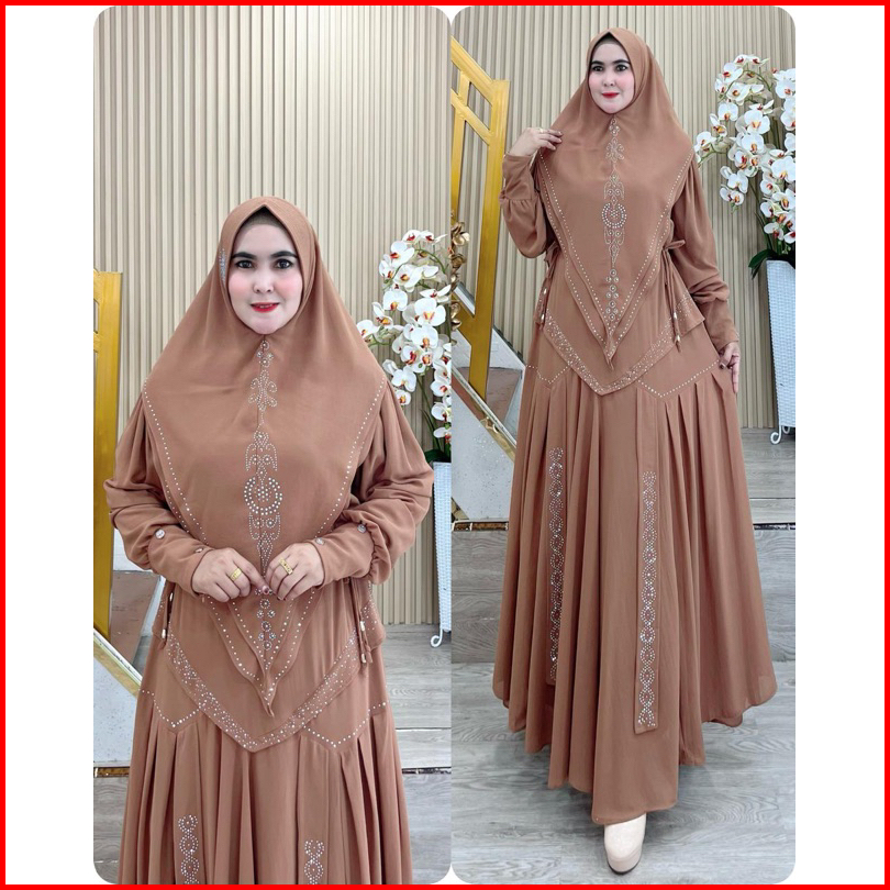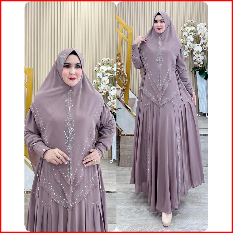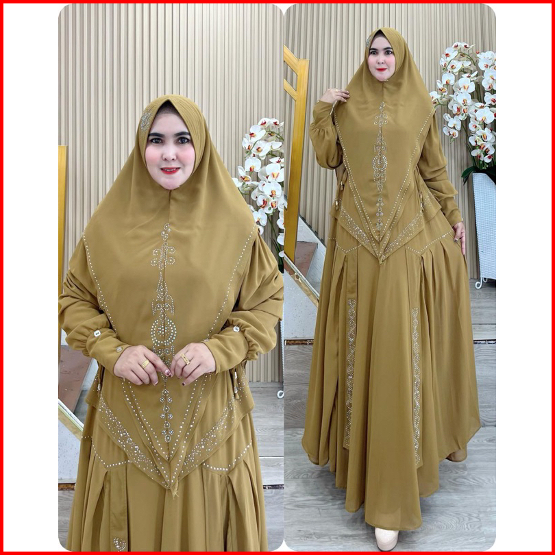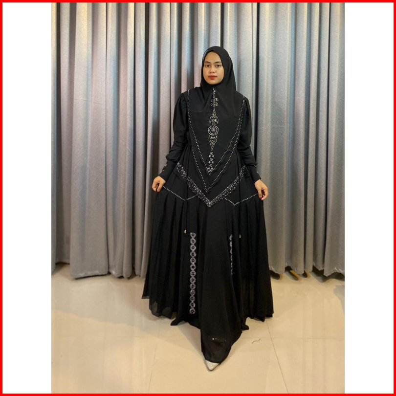 Gamis Syari Rempel Kiri Dan Kanan Terbaru Mix Swarovski Mewah