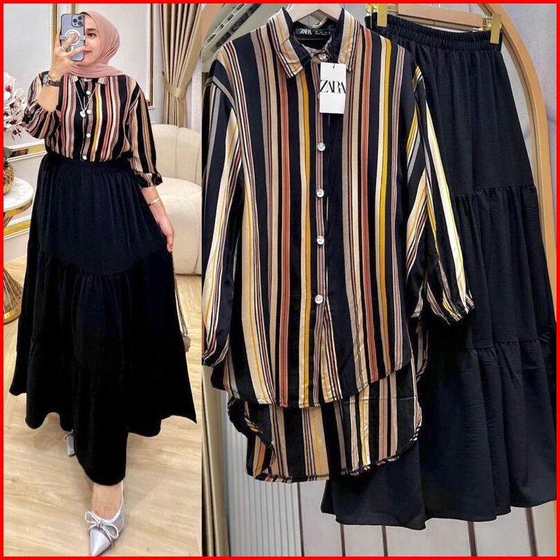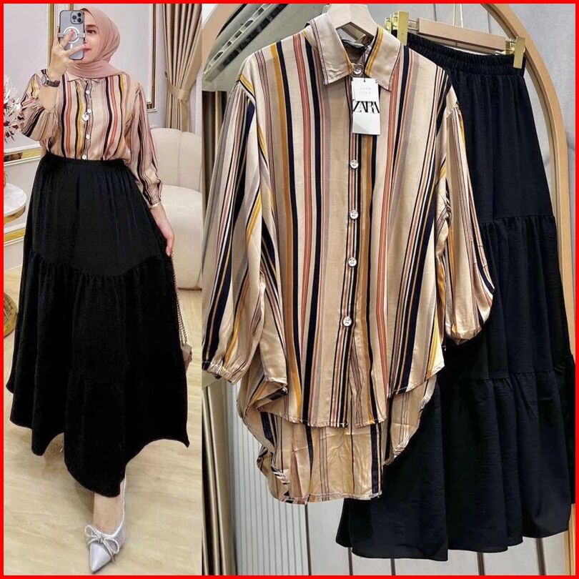 Set Havel Rayon Mix Crinkle Set Rok Motif Rayon Mix Crinkle Setelan Kombinasi Polos Motif One Set Rok Polos Kombinasi Po