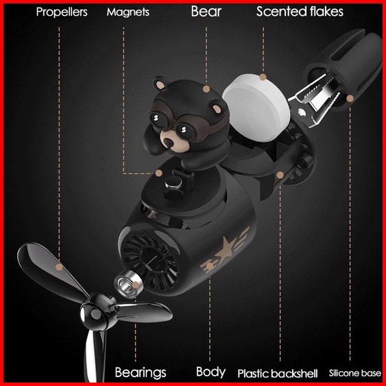 Parfum Pajangan Mobil Karakter Bear Pilot Kincir Berputar Aroma Natural Plant Beruang Mobil