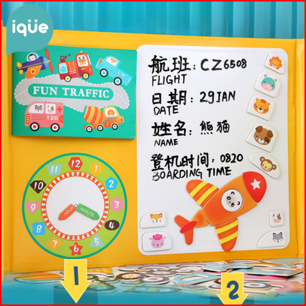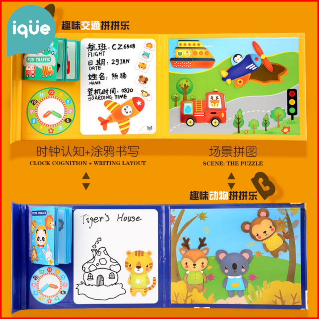 Ique Puzzle Magnet Belajar Bentuk Waktu Menulis Gambar Mainan Edukasi Anak