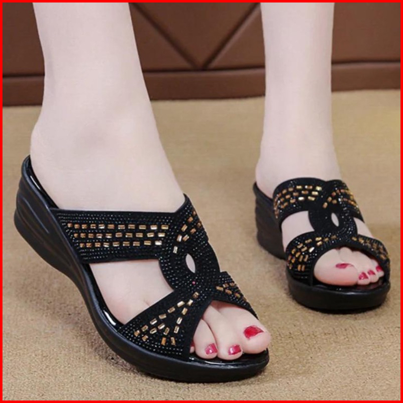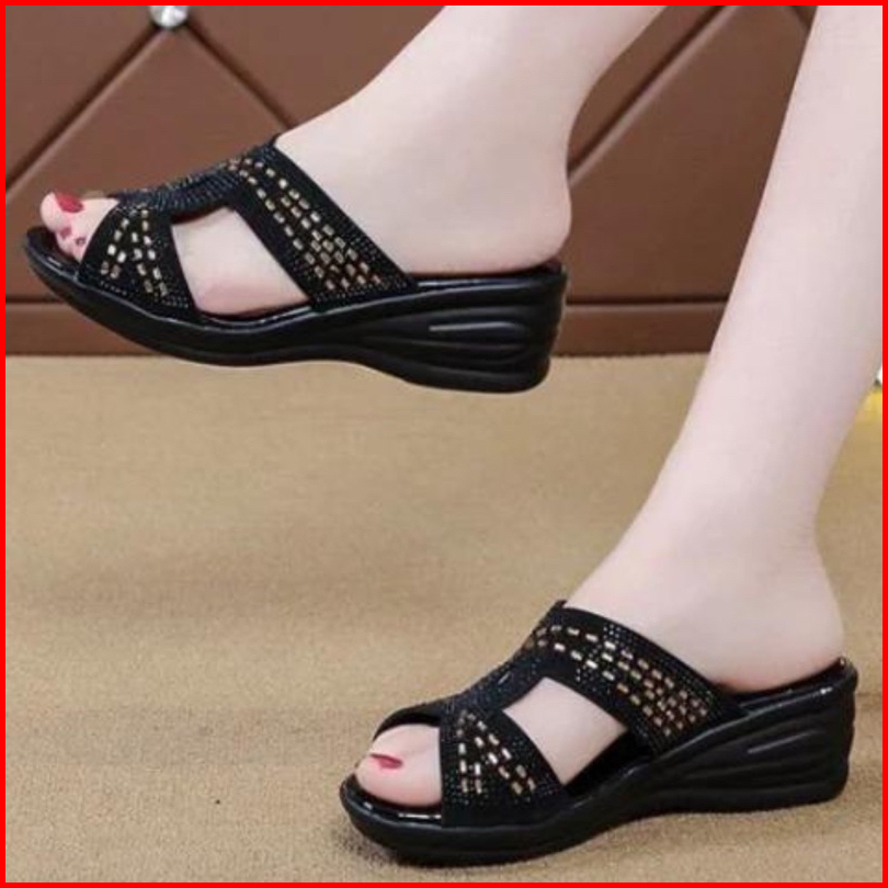 Sandal Wanita Wedges Blink Blink Permata Import Terbaru Kekinian