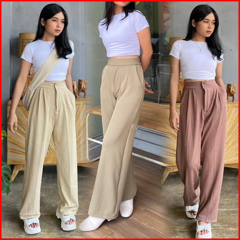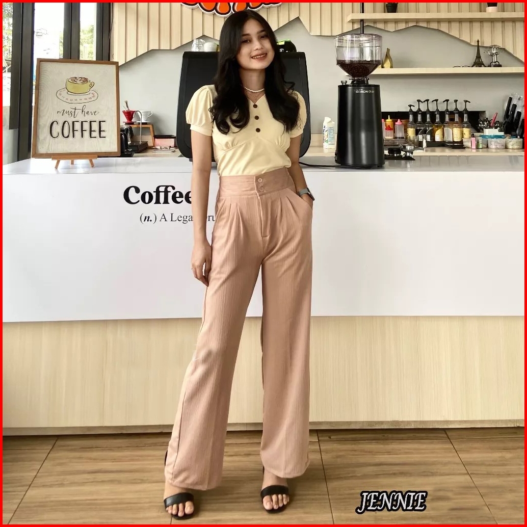 Celana Kulot Highwaist Knit Jennie Pants Knit Premium Cullote Highwaist Panjang Kekinian