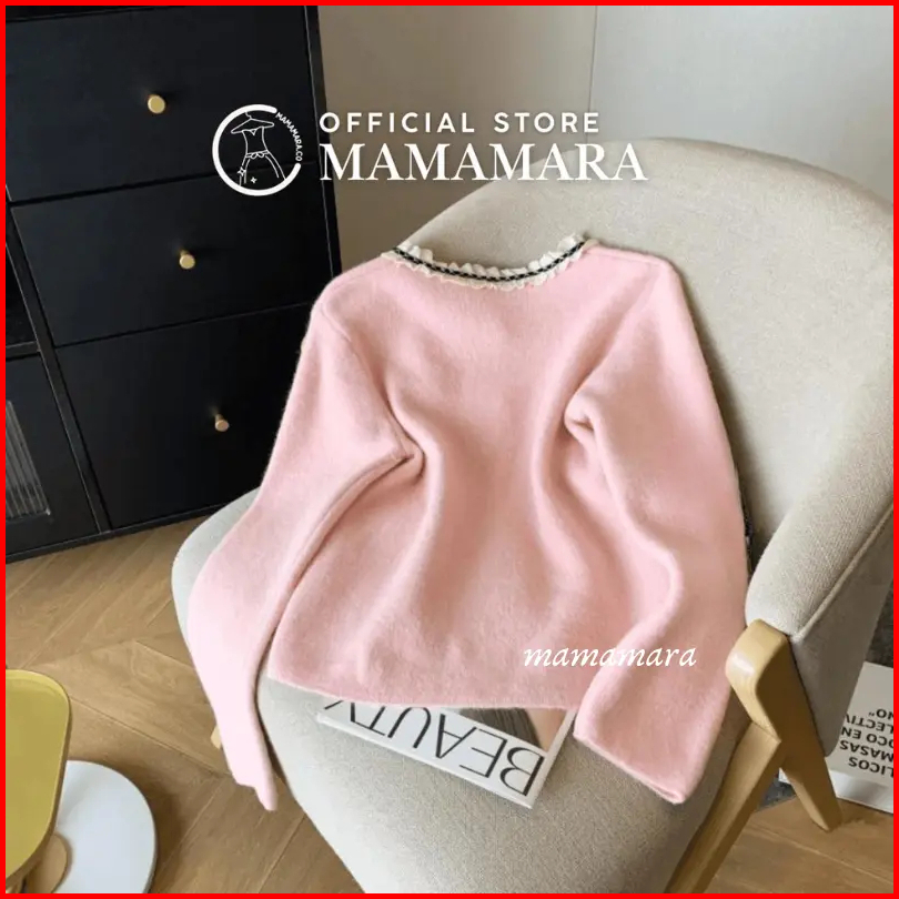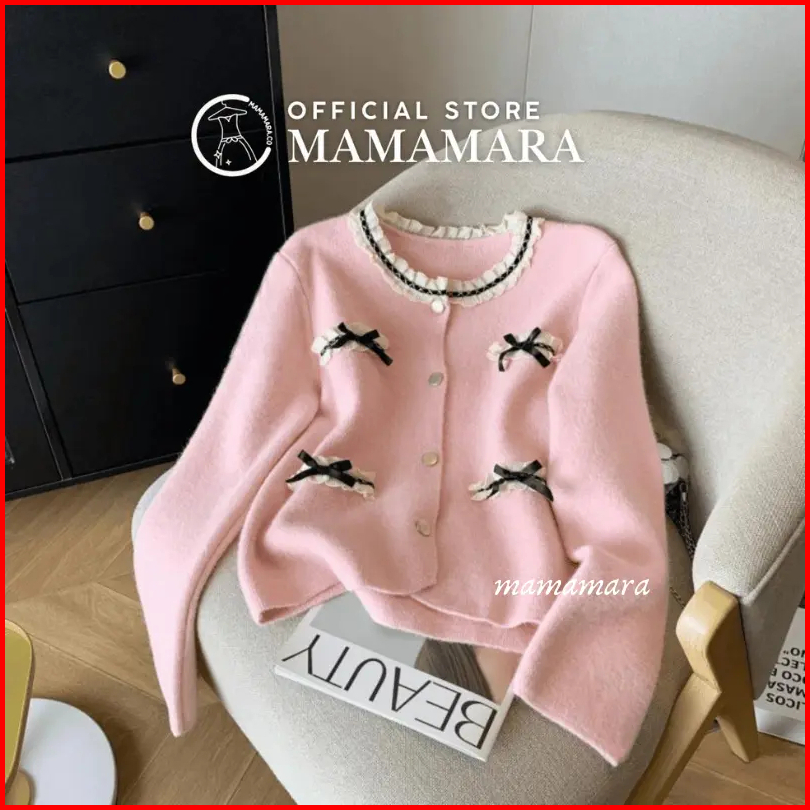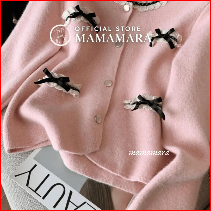 Mamamara - Blazer Cardigan Elegant Classy Pita Imut Pastel Bkk Halus Knitwear Santai Wol Outer