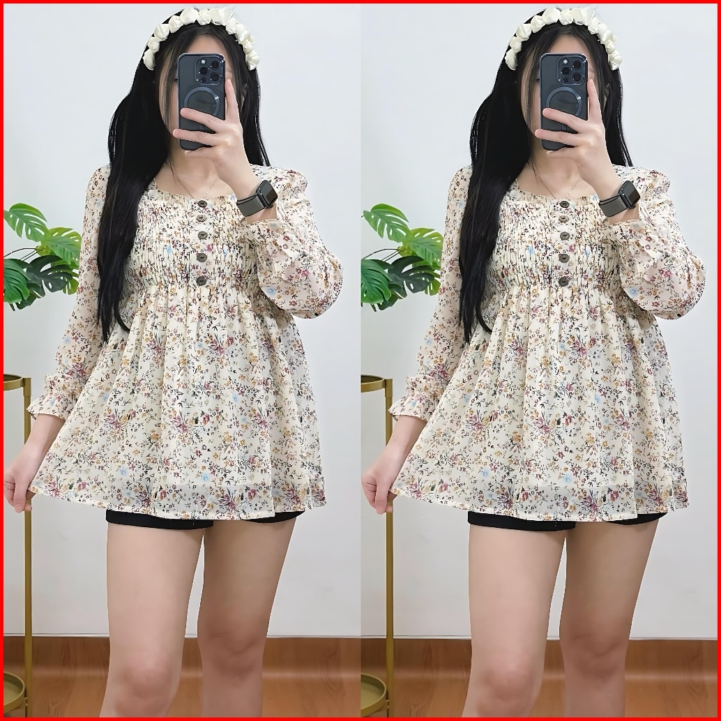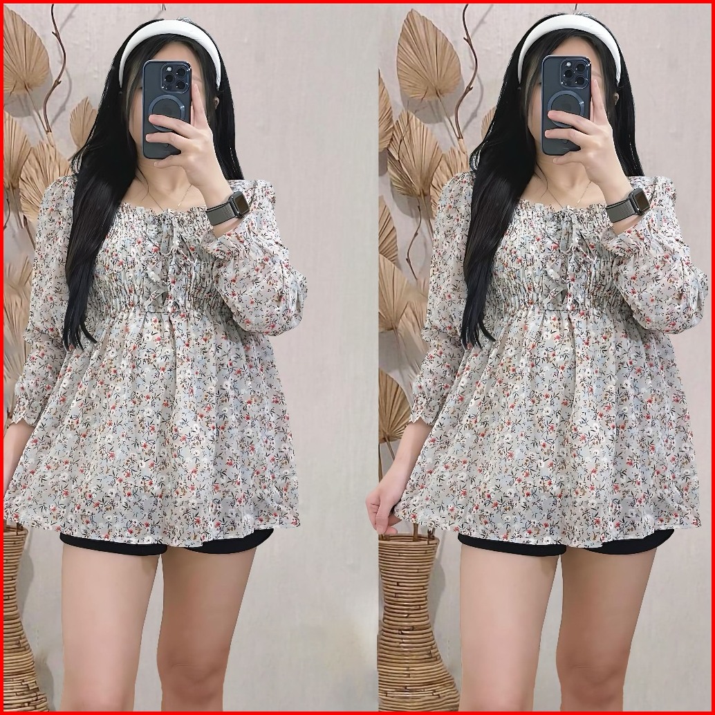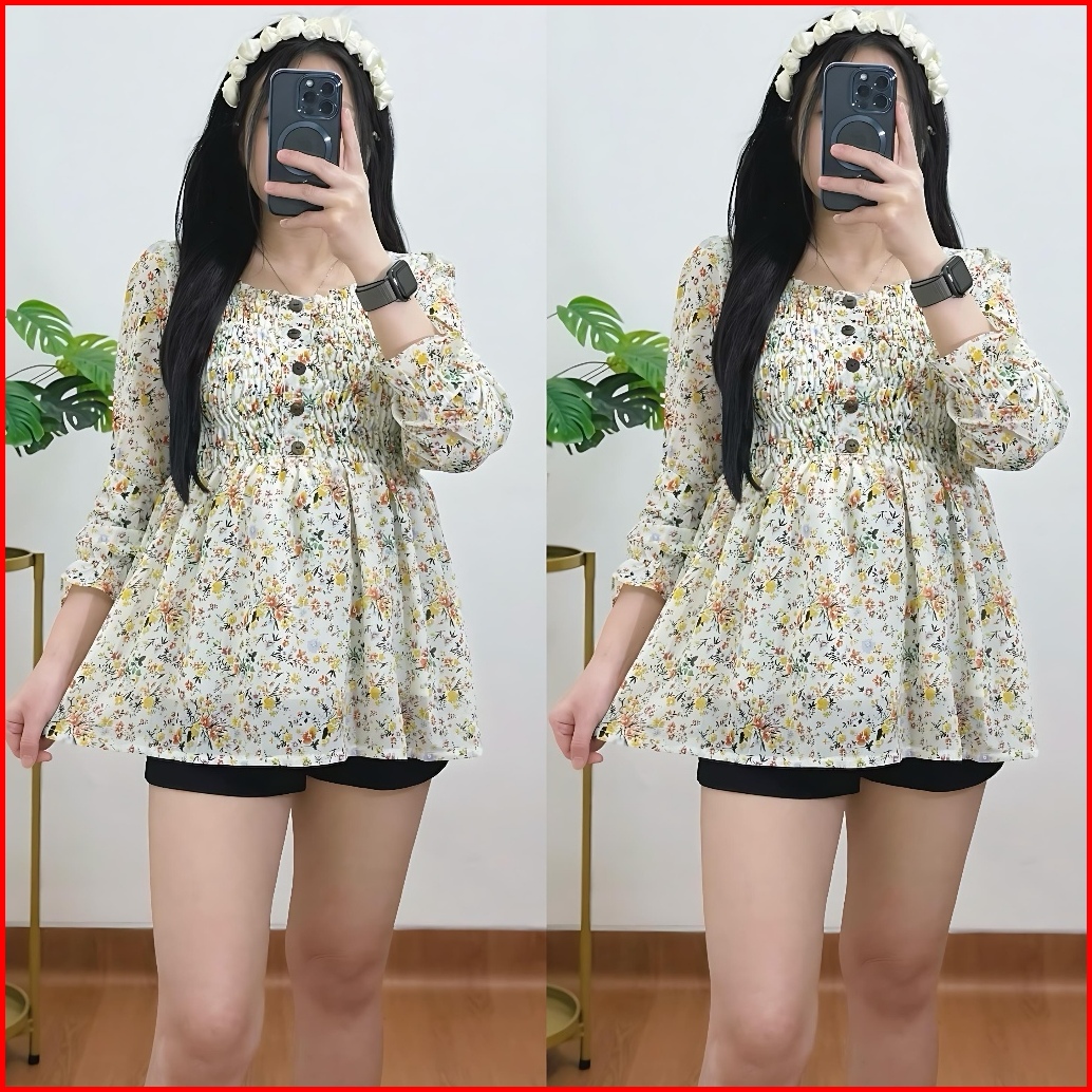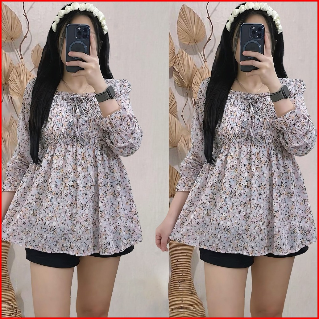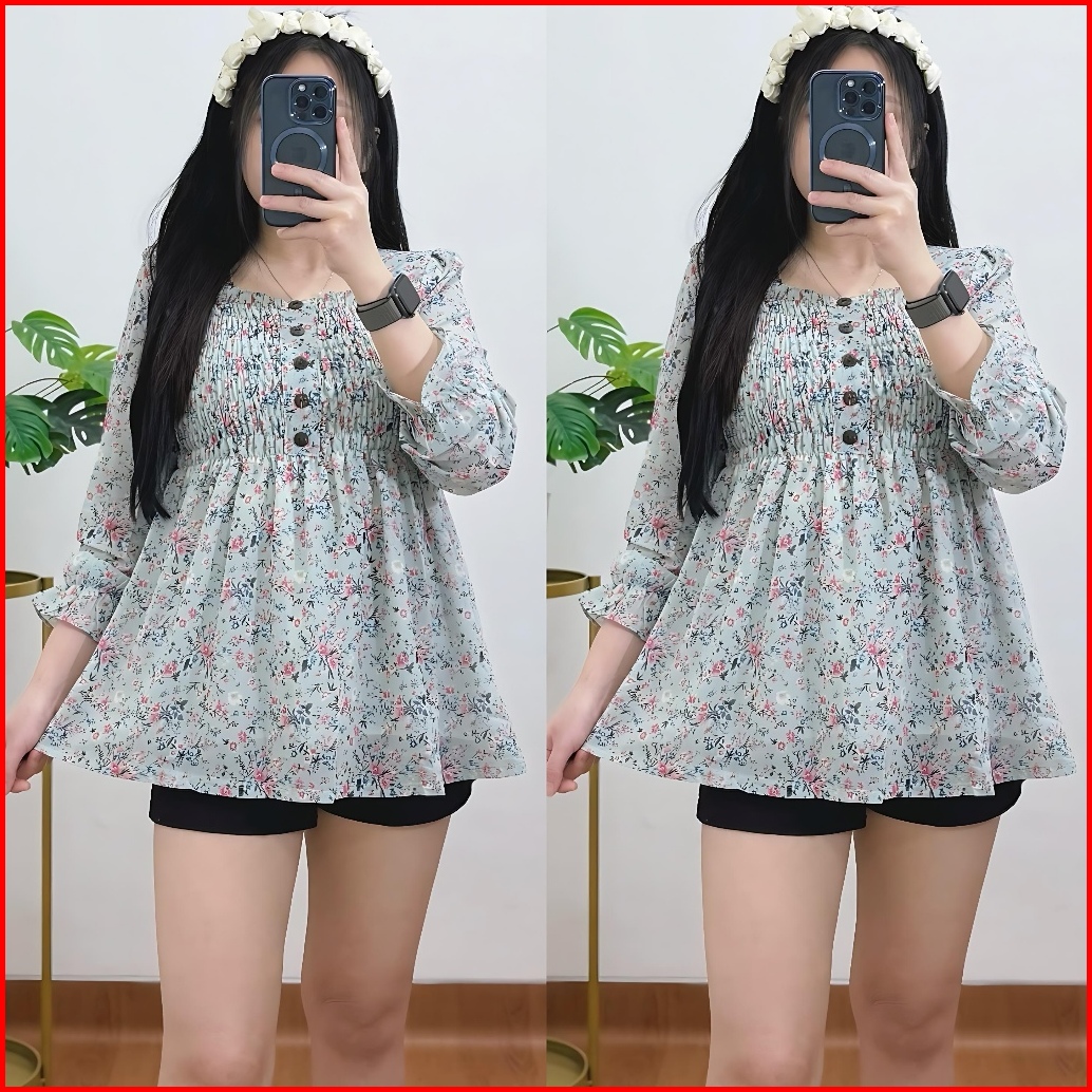 Blouse Wanita Bunga Kerut Ceruty Import Premium Blus Wanita Import Blus Wanita Kasualp