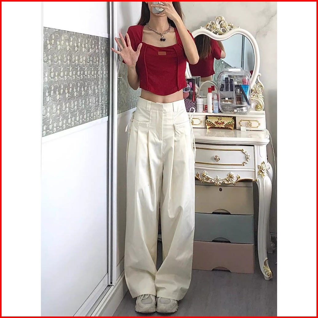 Celana Setelan Kasual Wanita Bertali Aprikot Hw Loose Straight Kulot-celana Setelan Wanita Terbaru