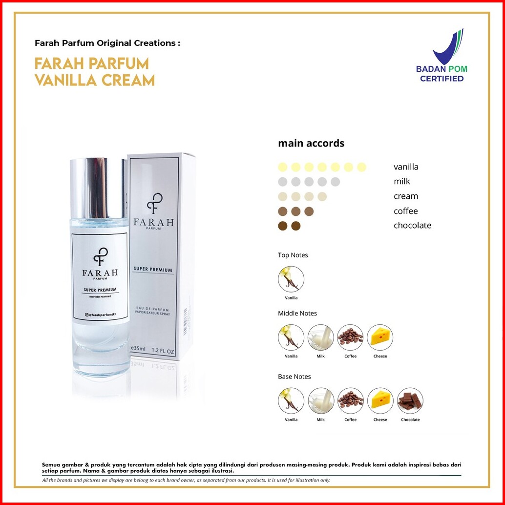 Vanilla Cream Women Super Premium By Farah Parfum - Parfum Wanita Tahan Lama - Best Seller No.7