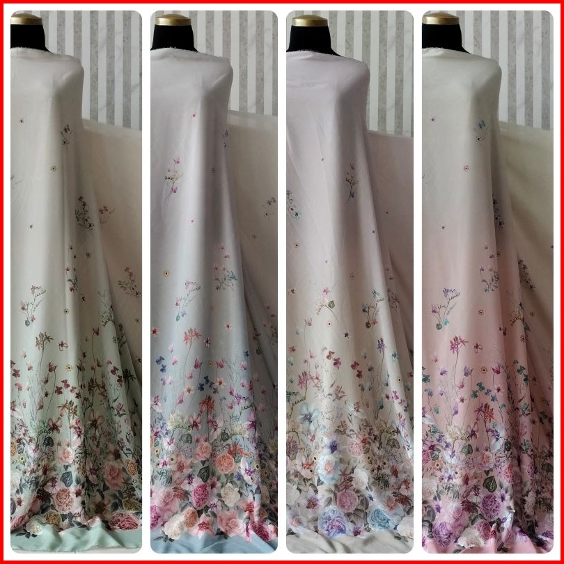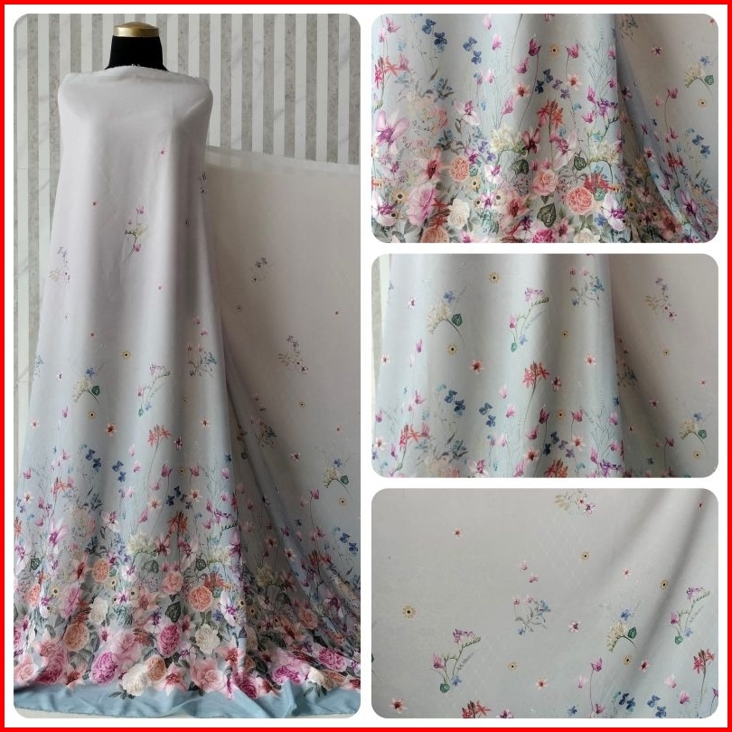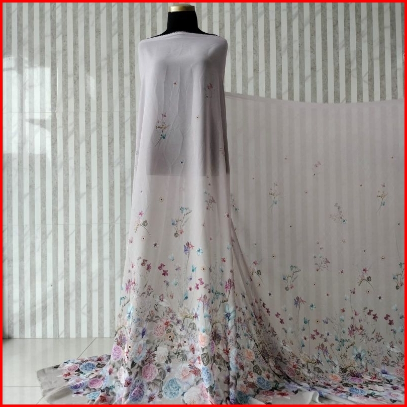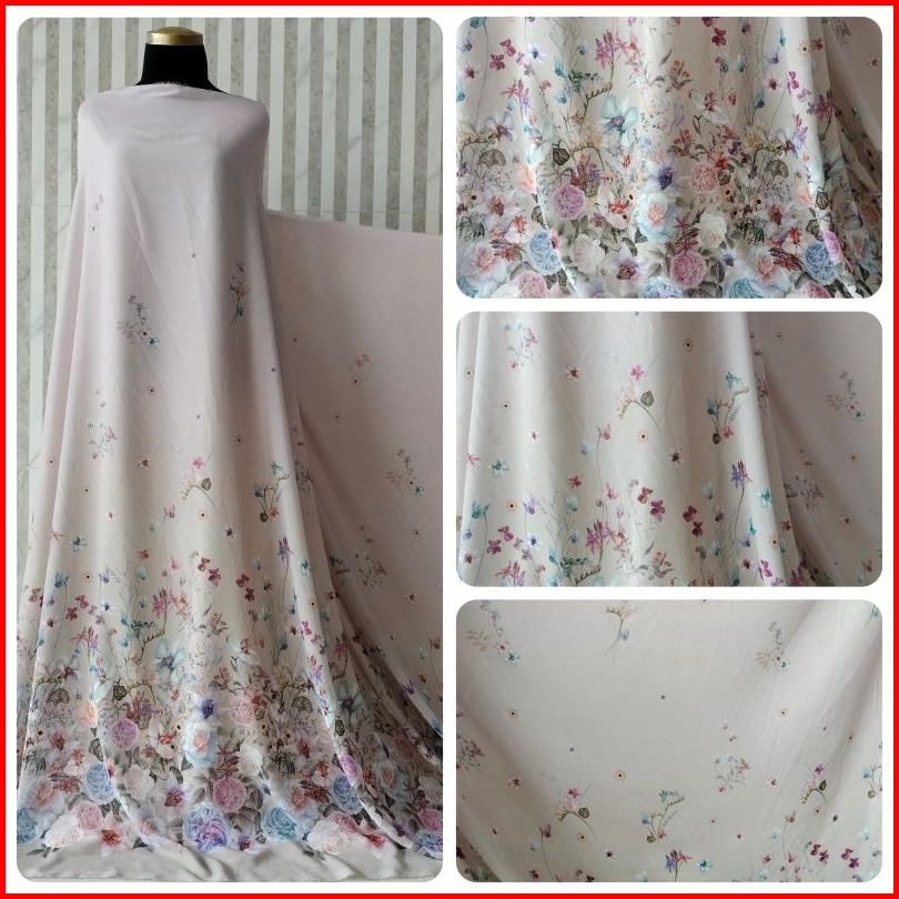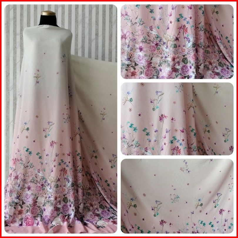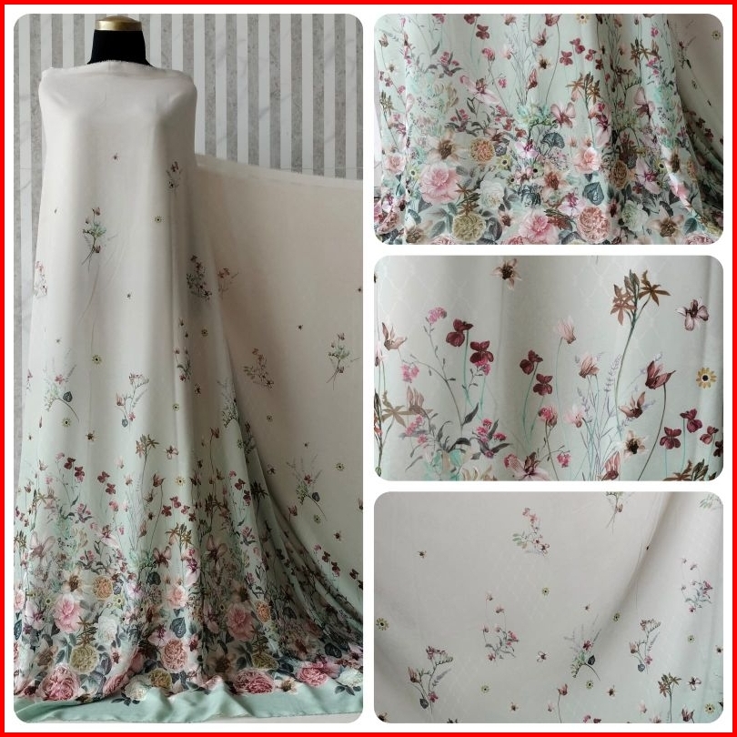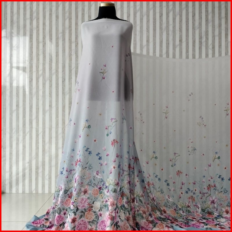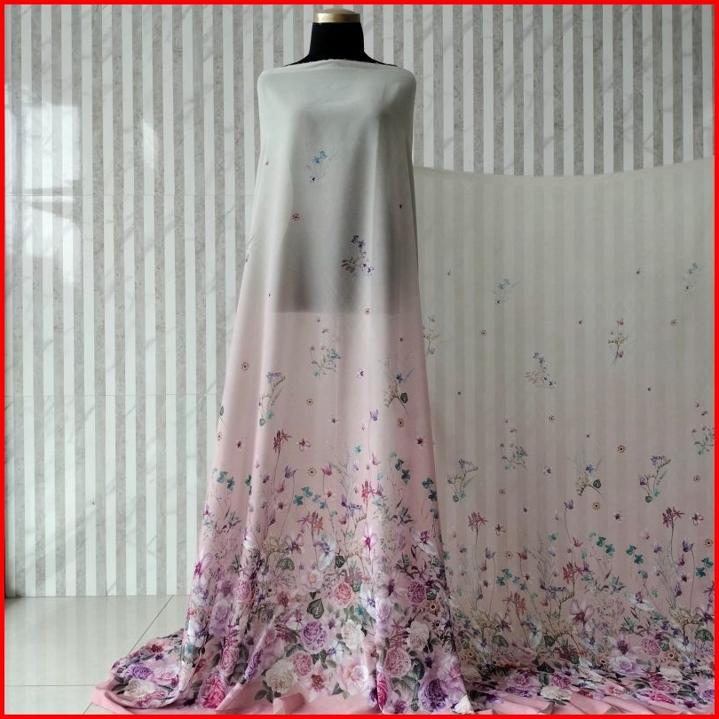 Kain Meteran Bahan Cherry Sifon Silk Premium Motif Floral Wisteria Super Lembut Halus