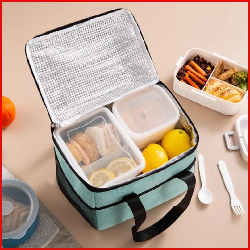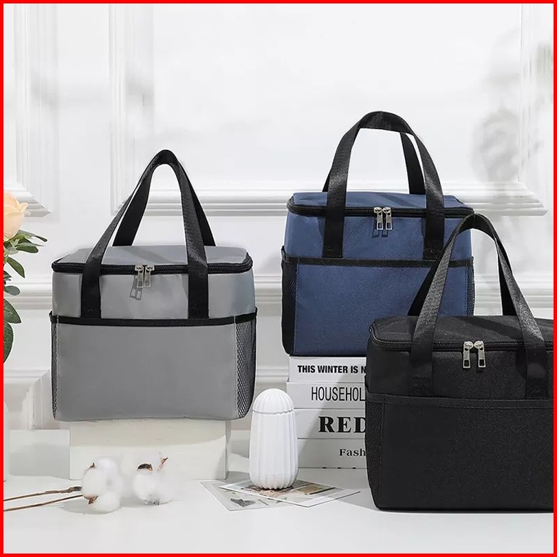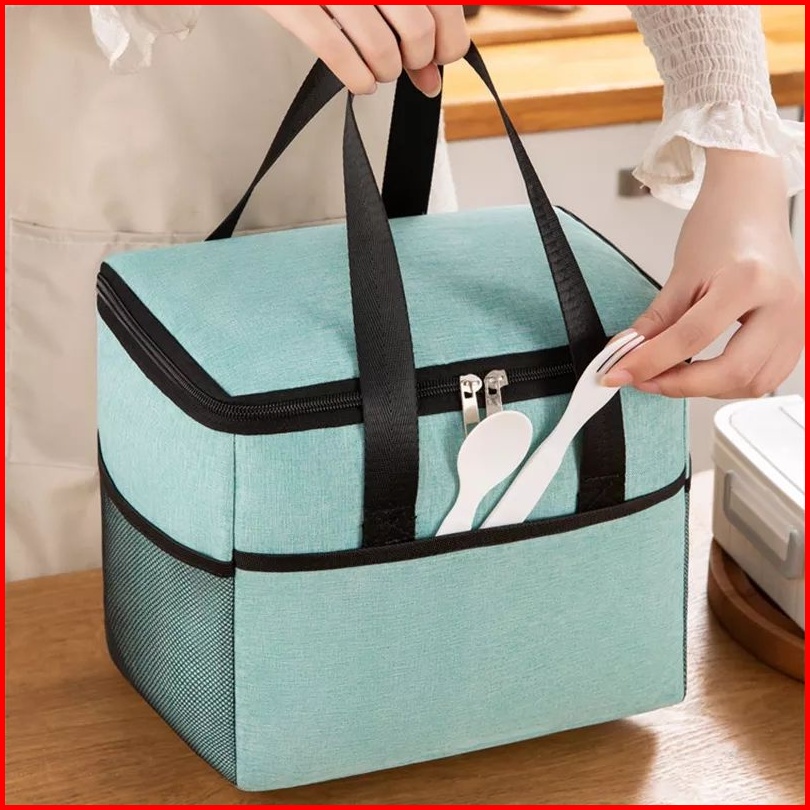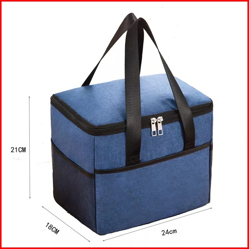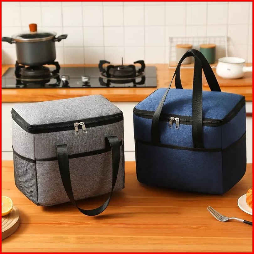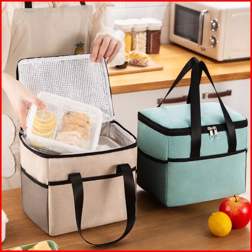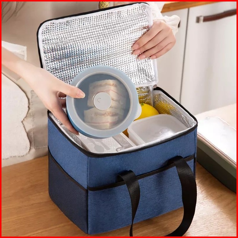 Tas Thermal Oxford Alumunium Foil Lunch Bag Tas Kotak Bekal Makan Piknik Traveling 24x18x21cm