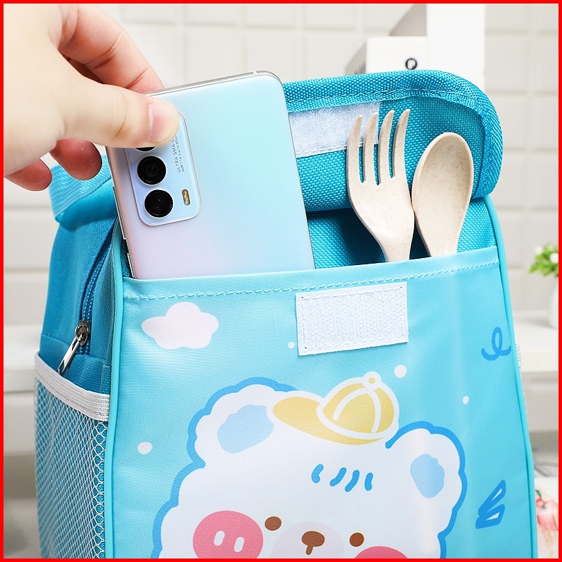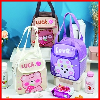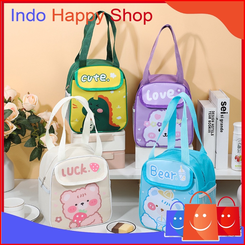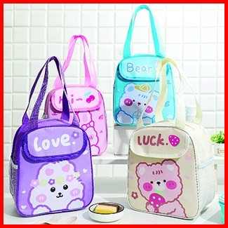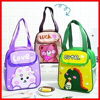 Tas Bekal Lunch Cooler Bag Tas Bento Aluminium Motif Dino And Bear Korean Style 936