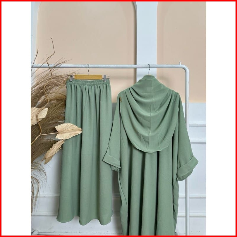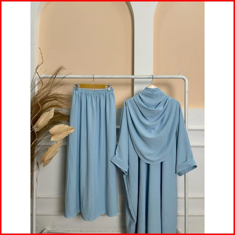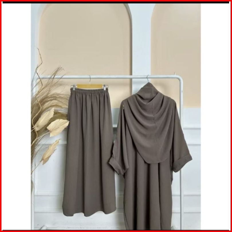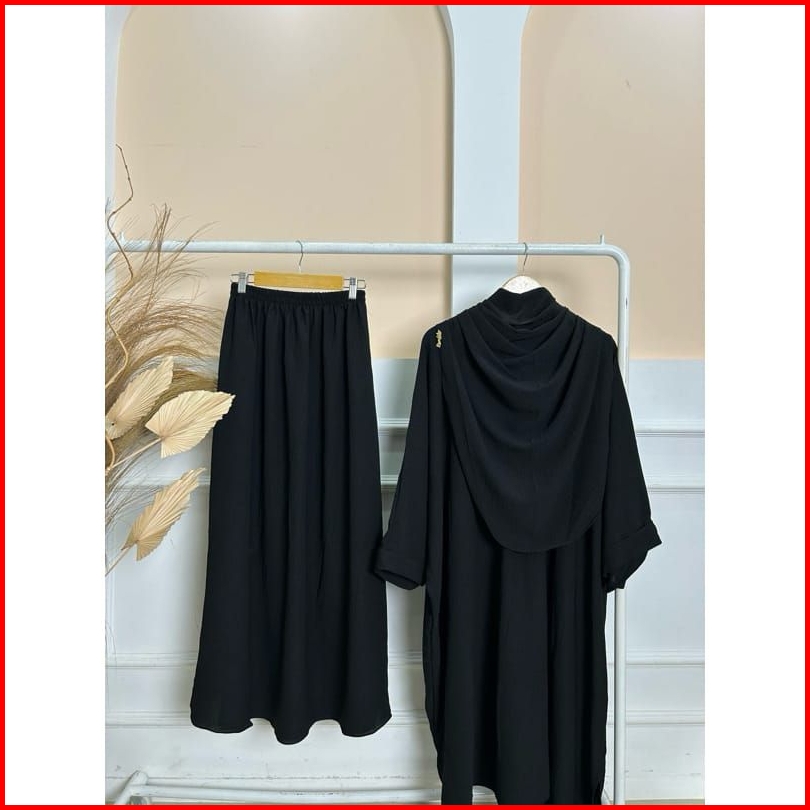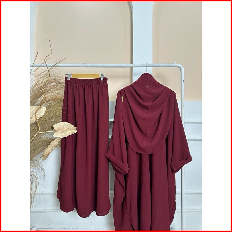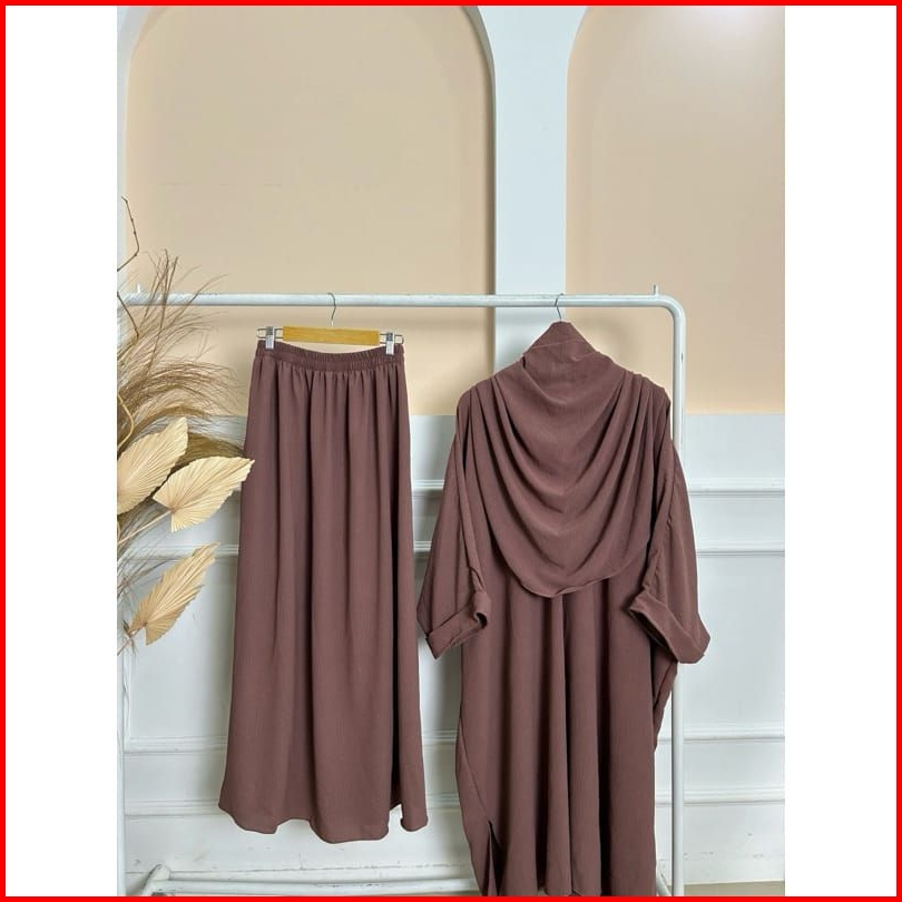 Yumna Set Rok Tunik Syar I Pasmina Ovall Baju Setelan Wanita Crincle Gamis Polos