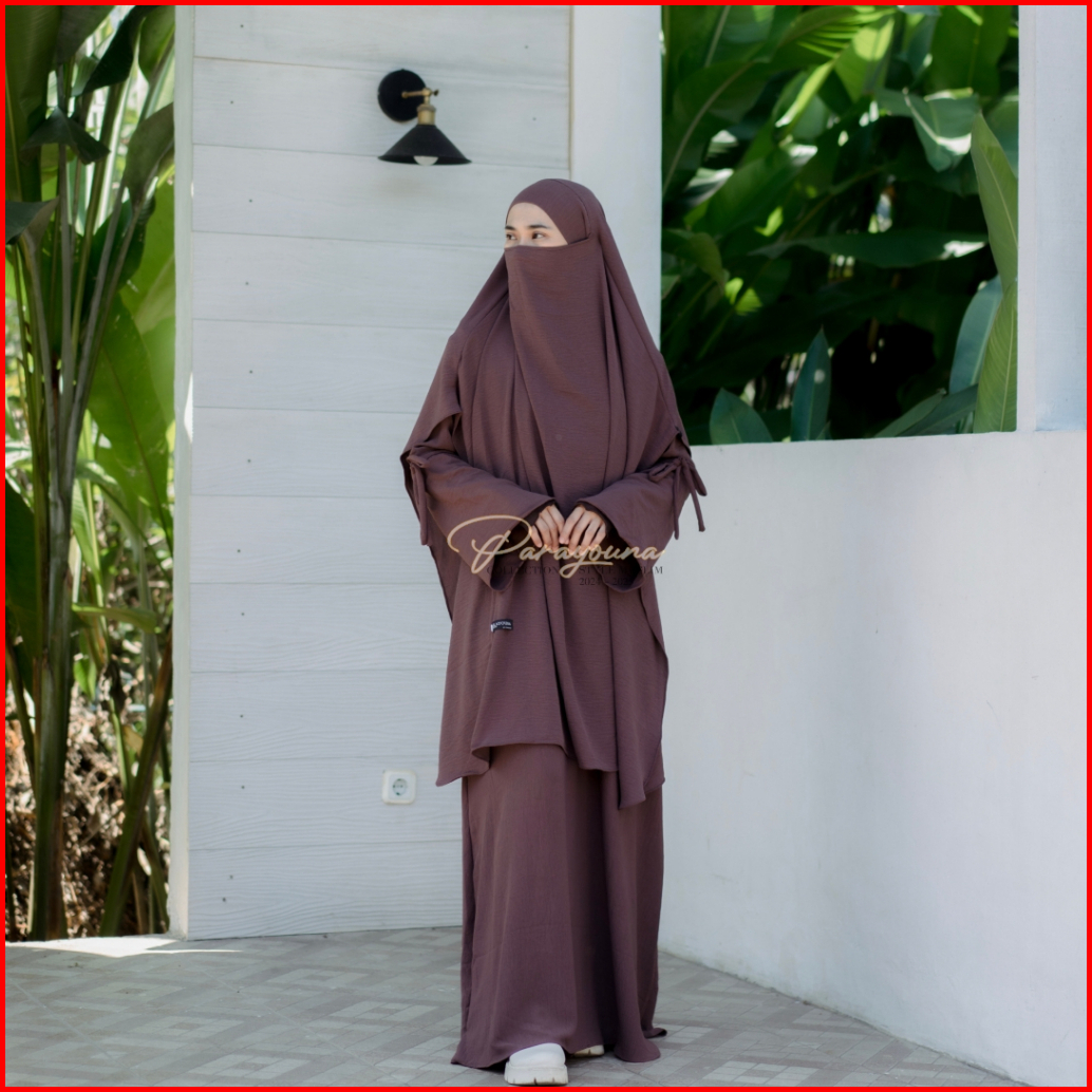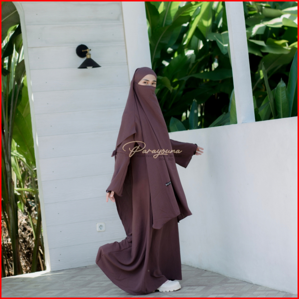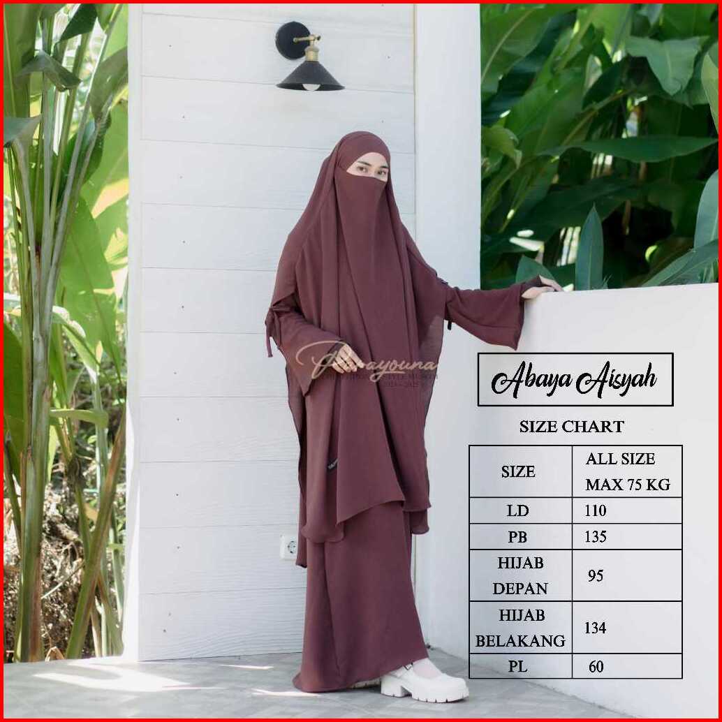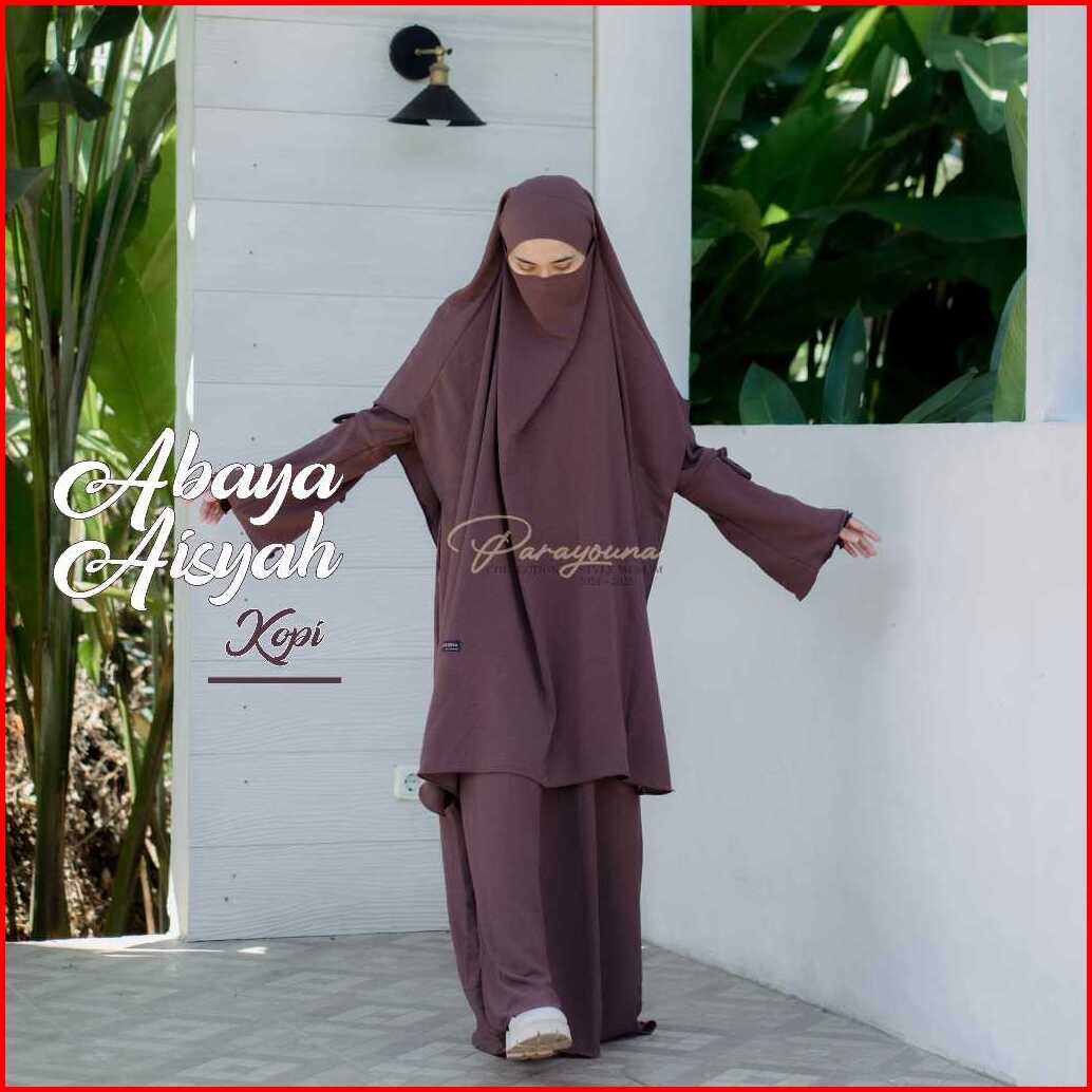 Aisyah - Abaya Syar I Wanita Muslimah Jilbab Franch Khimar Basic Staylist Turkis Tailand Cringkle Airflow Free Cadar Ban