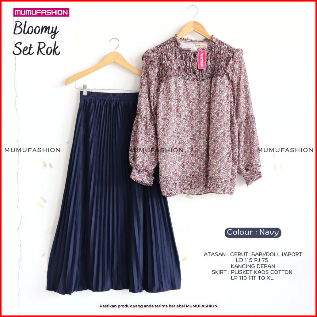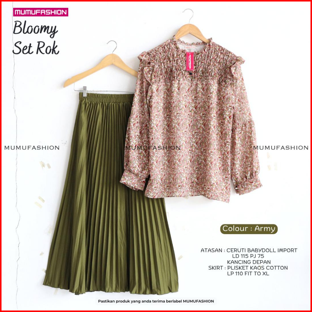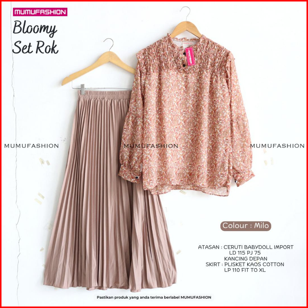 Mufash - Bloomy Set Atasan Blouse Ceruty Dan Rok Plisket By Mumufashion Solo Teranyar
