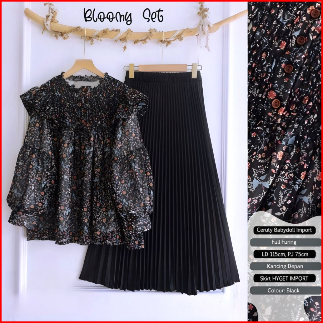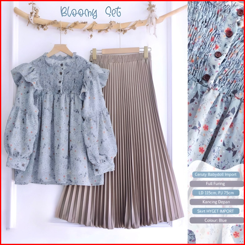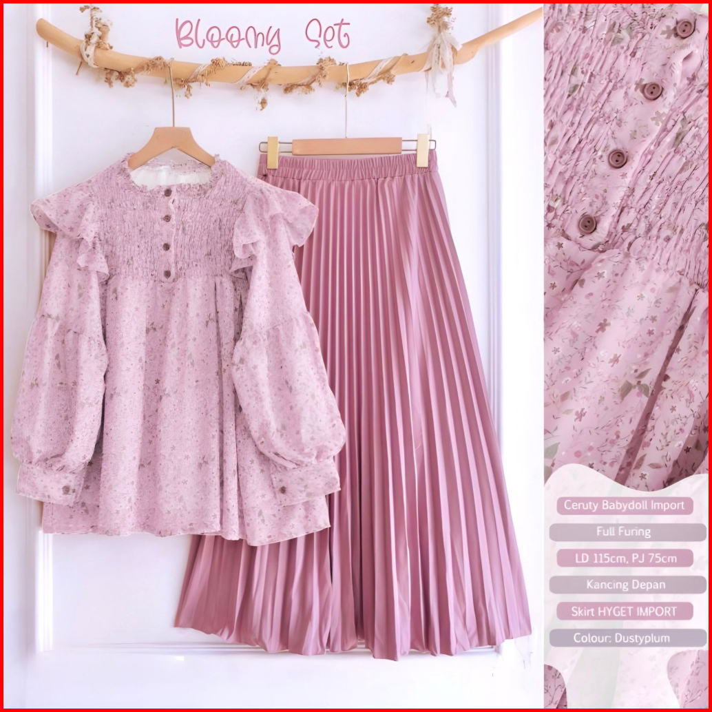 Mufash - Bloomy Set Atasan Blouse Ceruty Dan Rok Plisket By Mumufashion Solo Teranyar