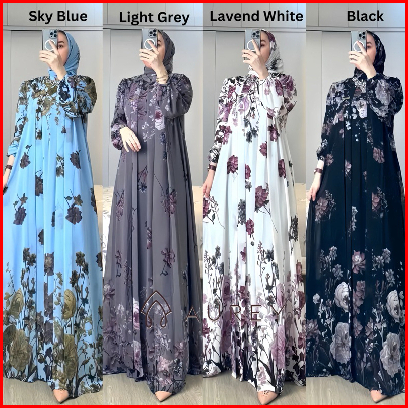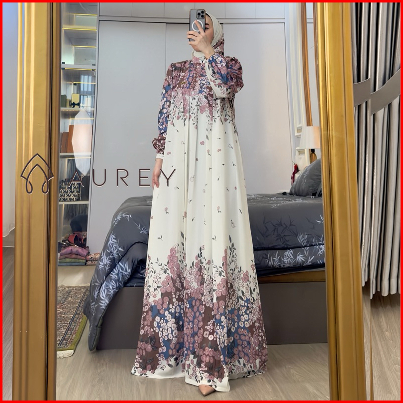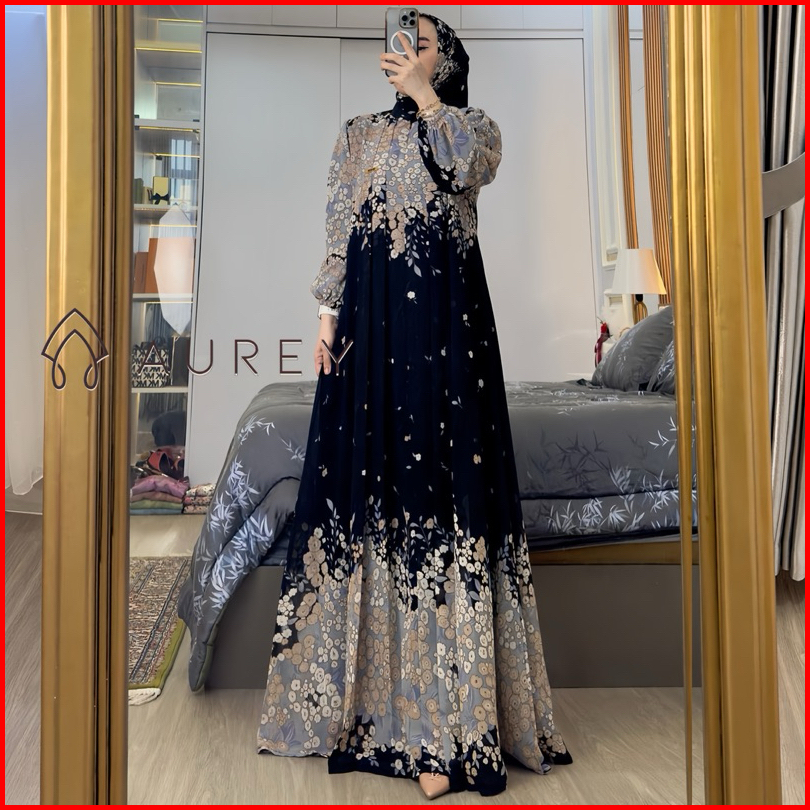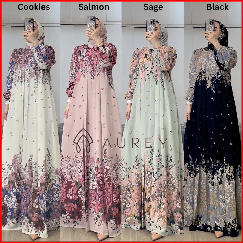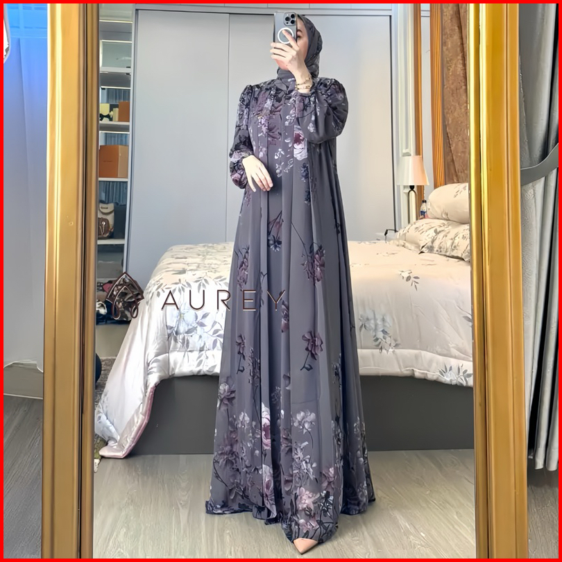 Aurey Set Hijab Viona Gamis Wanita Dress Mewah Busui Friendly Gamis Ceruti Elegan Setelan Hijab Gamis Wanita Setelan Set