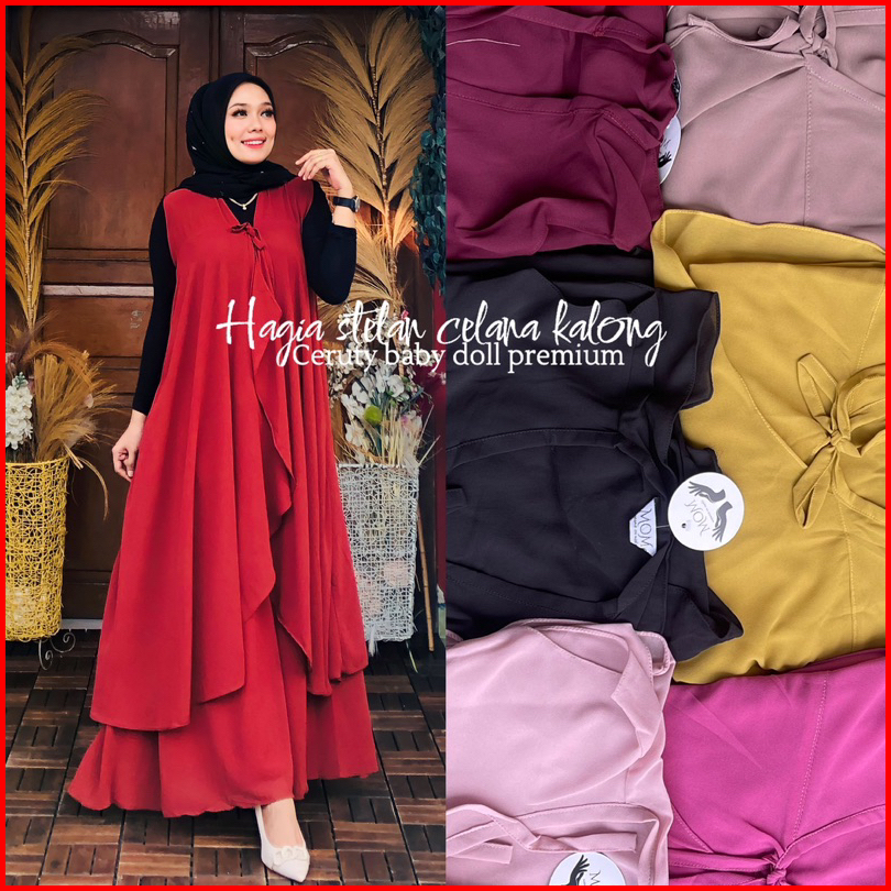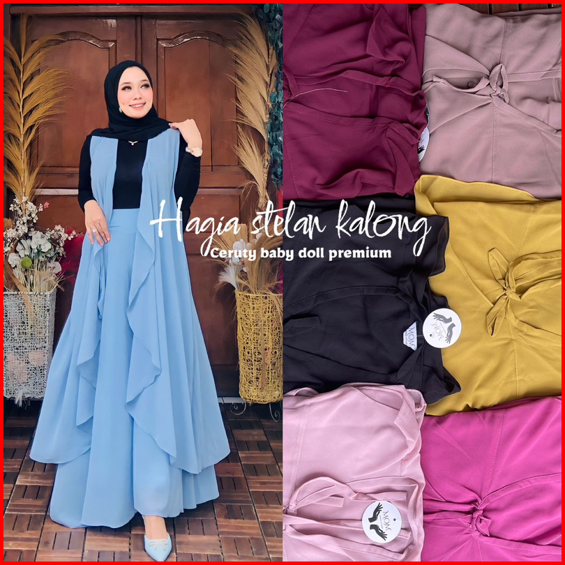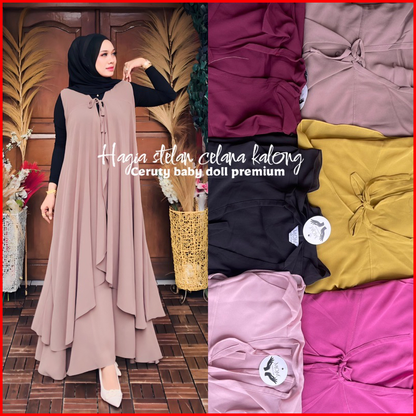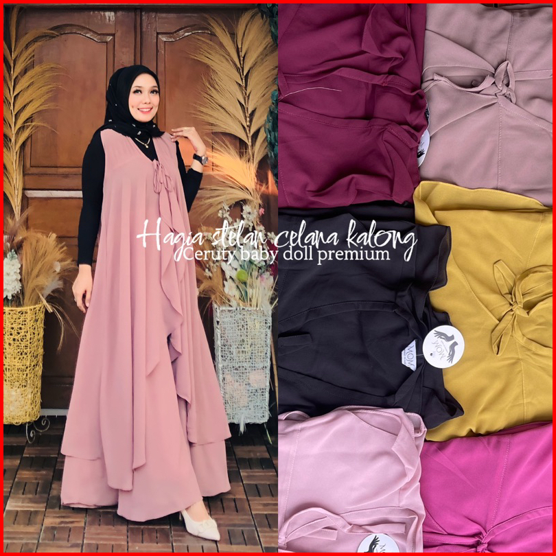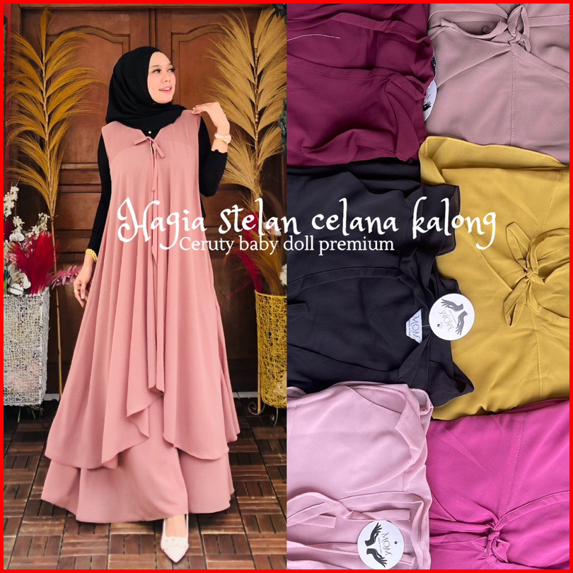 Setelan Kalong Hagia Tali Panjang Pakaian Muslimah Pakaian Wanita Terbaru Celana Kulot Pallazo Outer Panjang Modis Polos