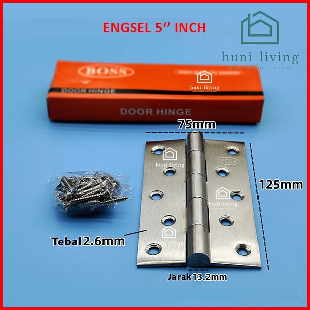 Engsel Pintu Stainless Steel 5 Inch Silver 2pcs