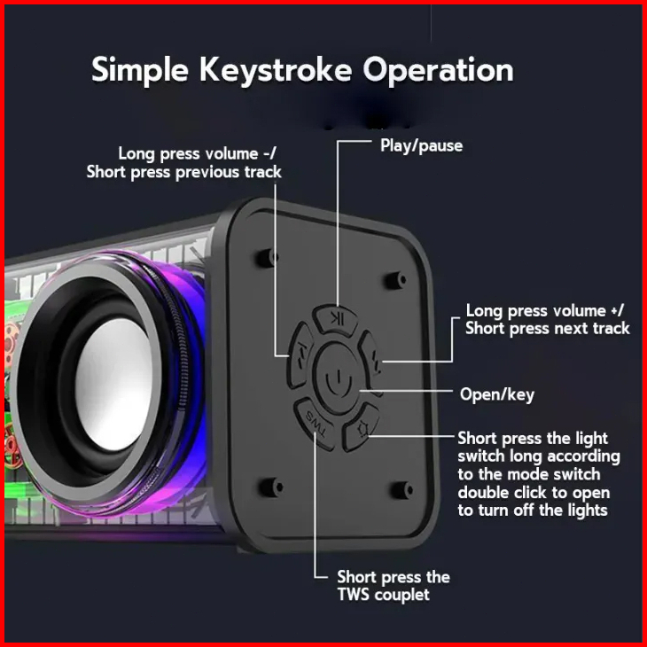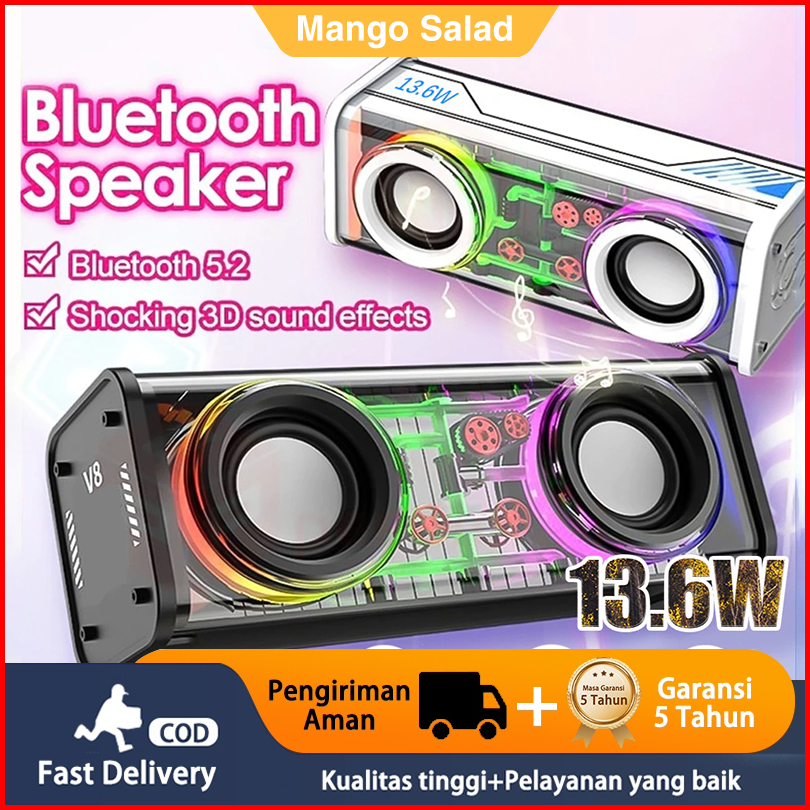 V8 Dual-horn Transparent Mech Speaker Bluetooth Soundbar Rgb Led Light 360 Stereo Surround Wireless Subwoofer Audio Spor