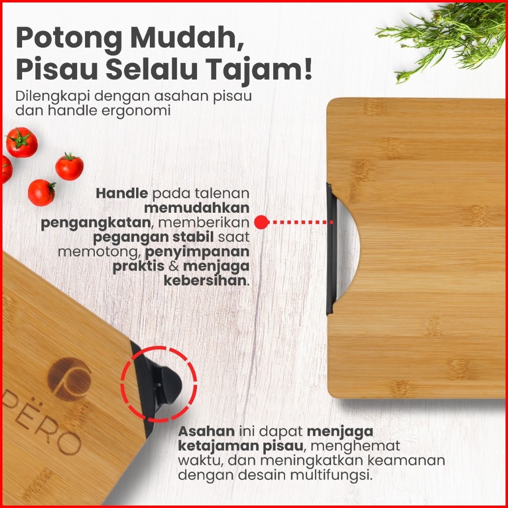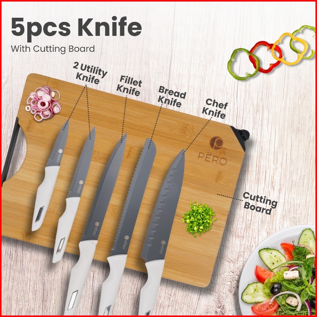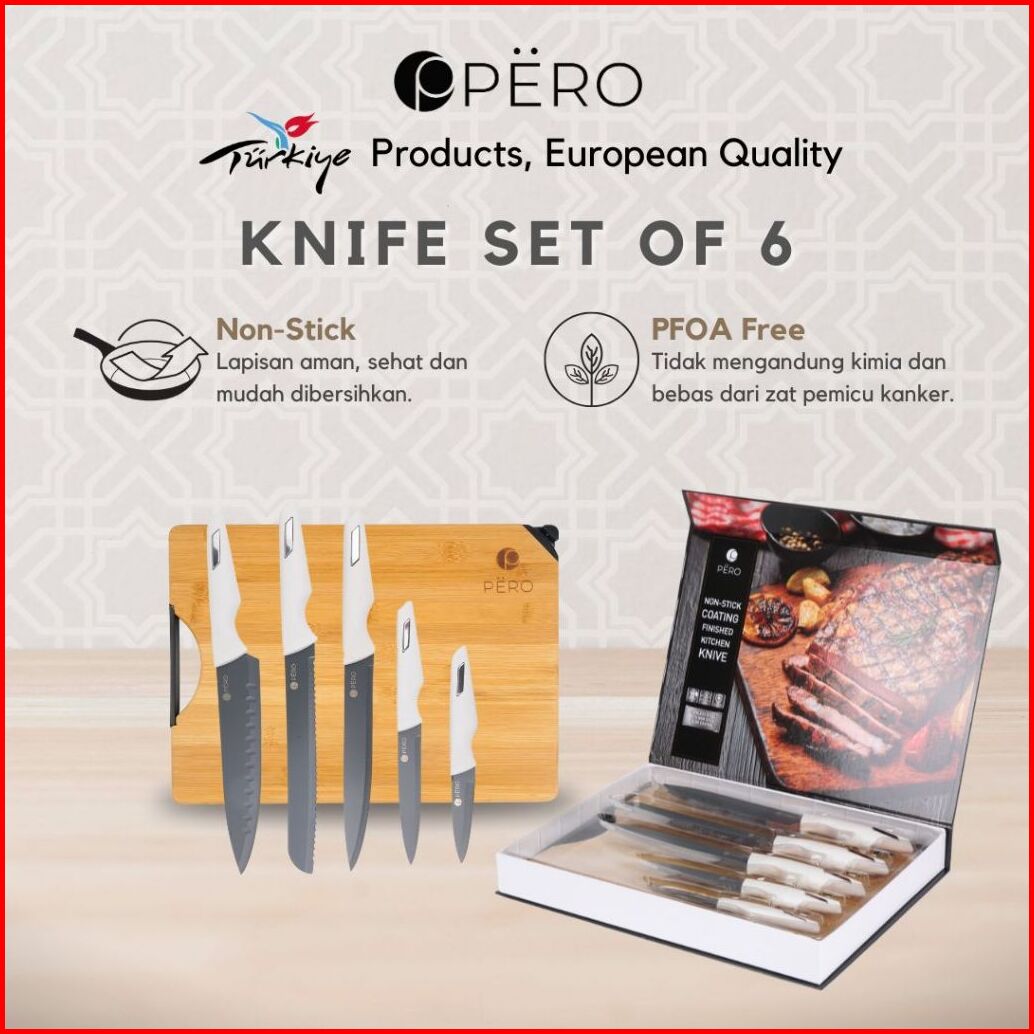 New Product Pero Premium Knives Set Of 6 With Cutting Board Pisau Set Isi 6pcs Dengan Talenan Kayu Lapisan Pisau Anti Le