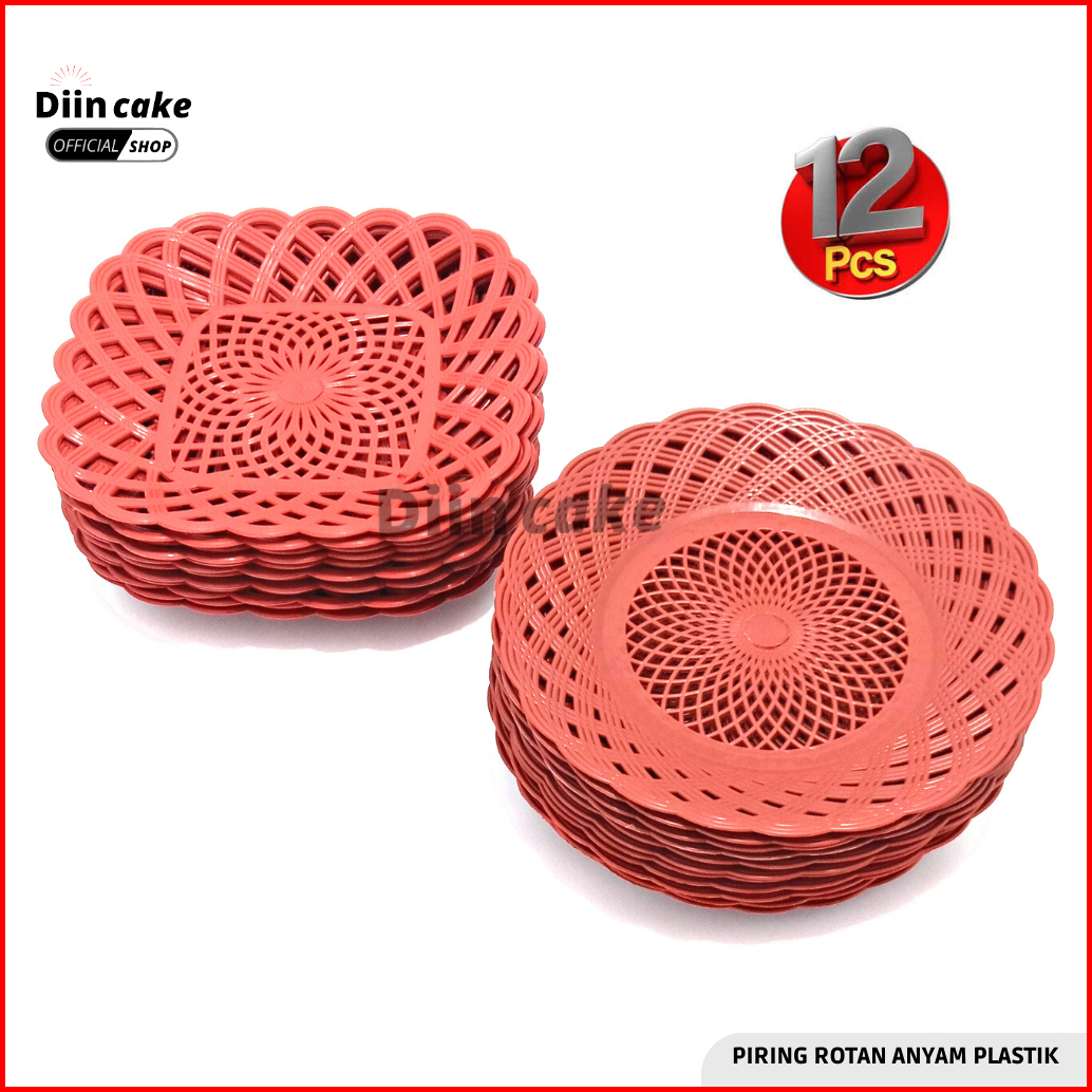 Piring Rotan Anyam Plastik 24 Cm 12 Pcs