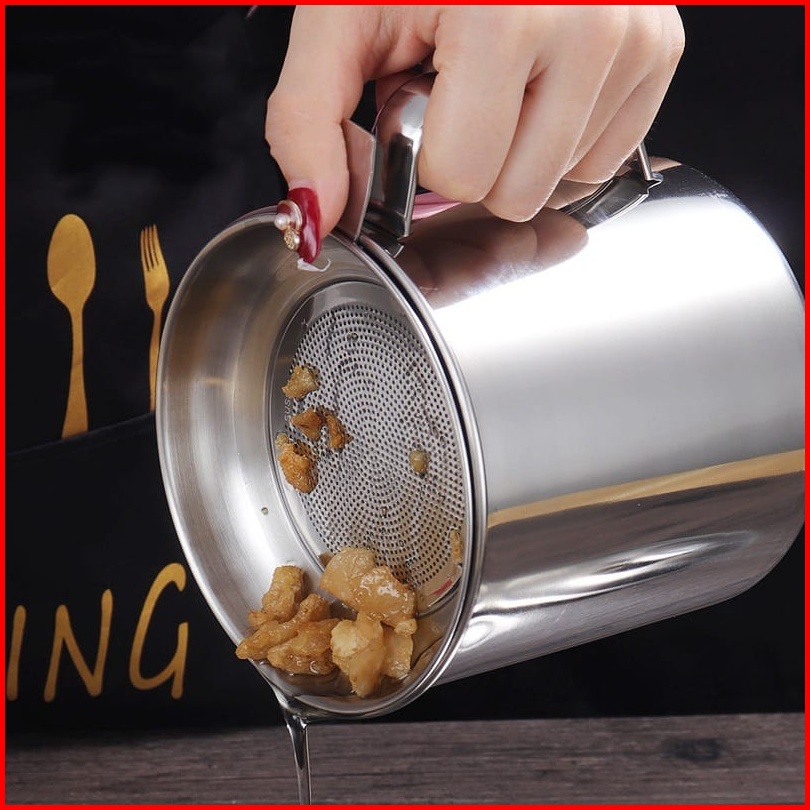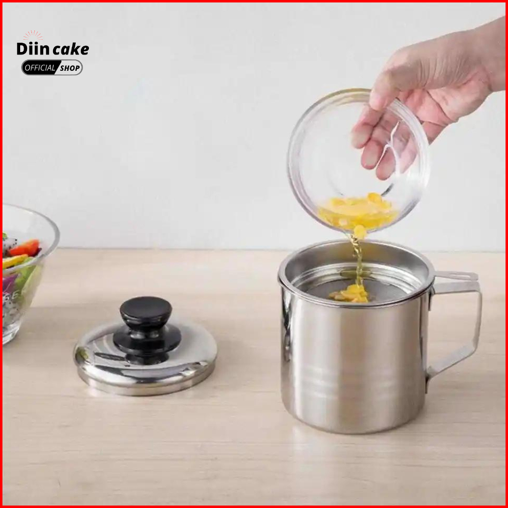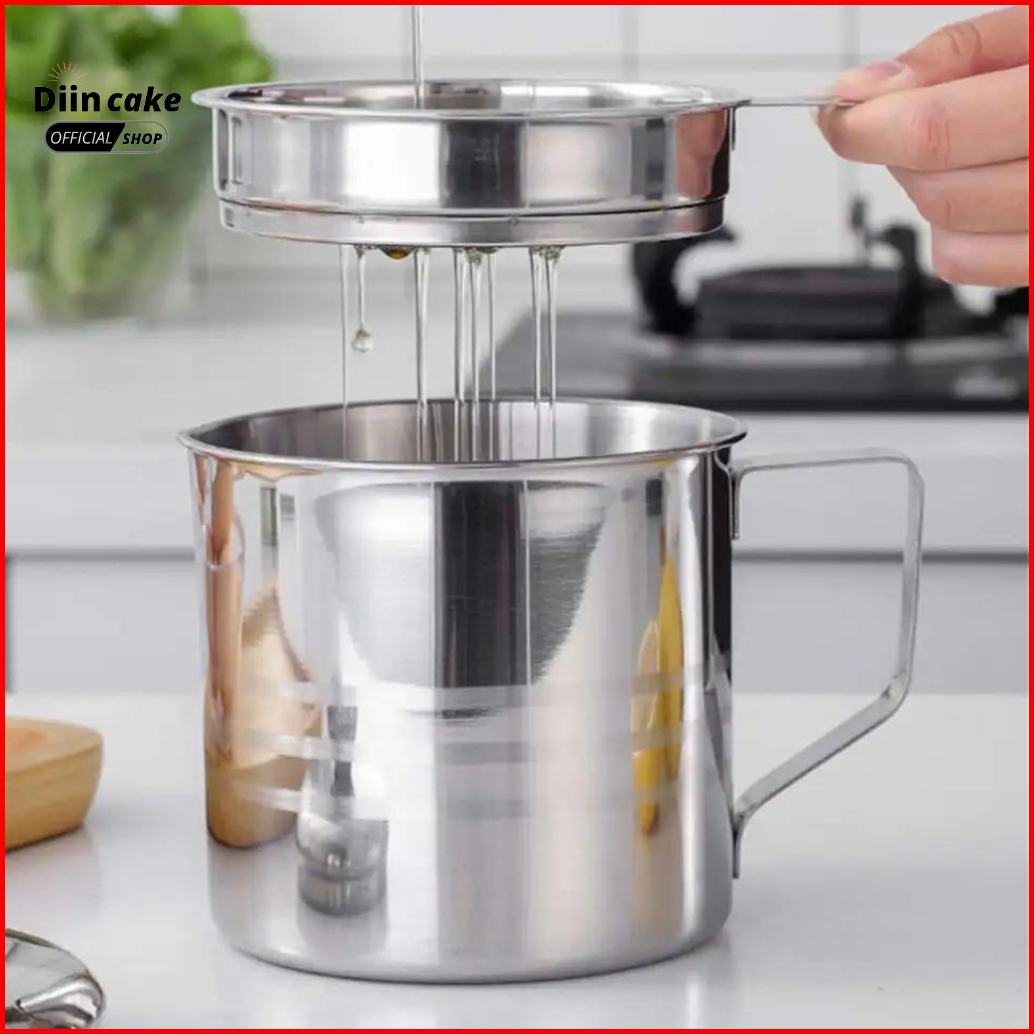 Wadah Saringan Minyak 1.2 Liter Oil Pot Filter Stainless Steel Penyaring Ampas Sisa Minyak Jelantah 1200 Ml