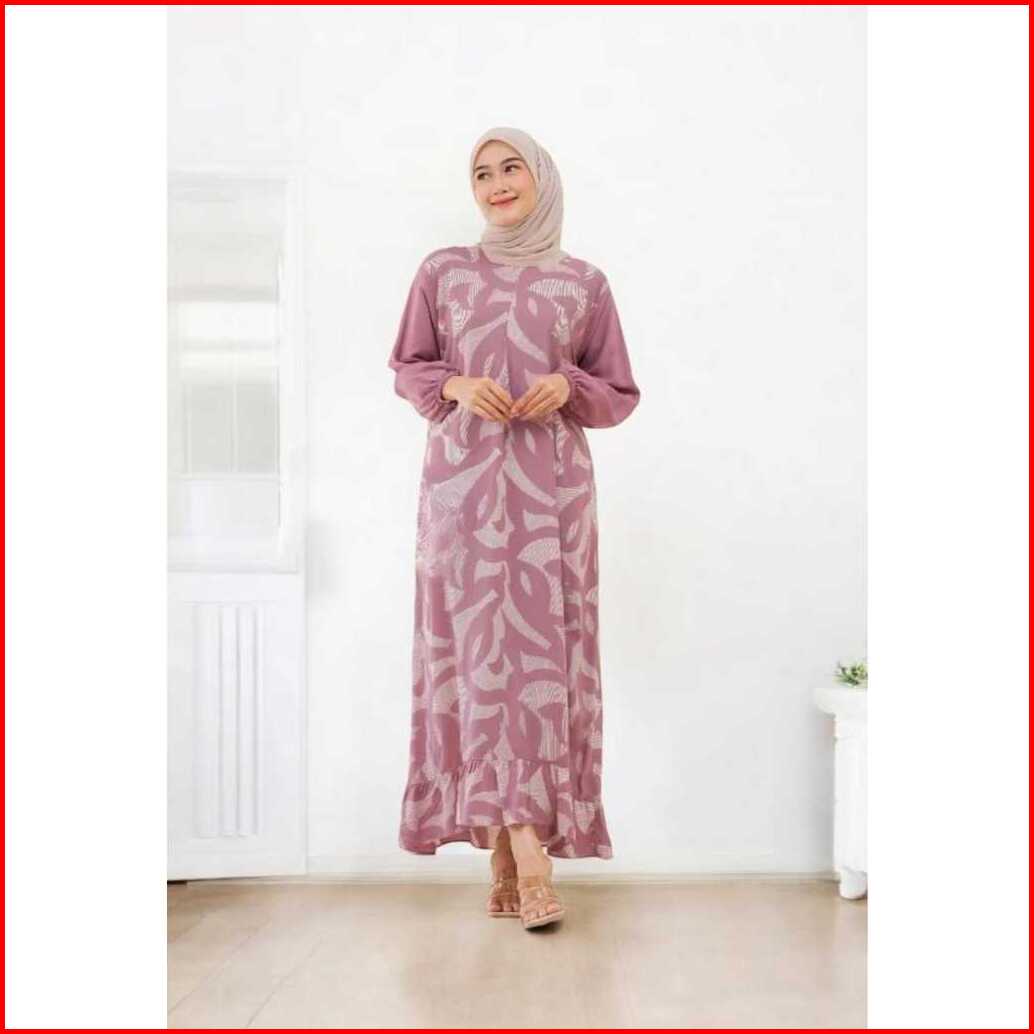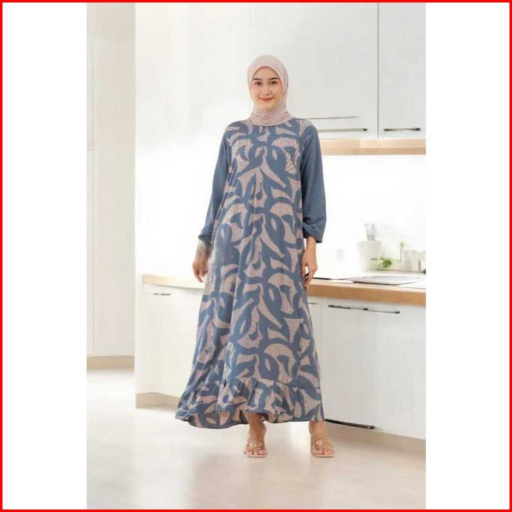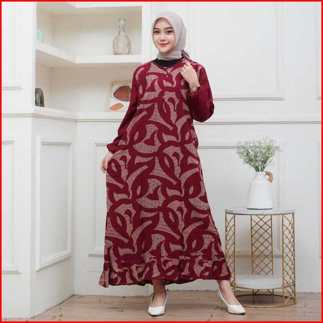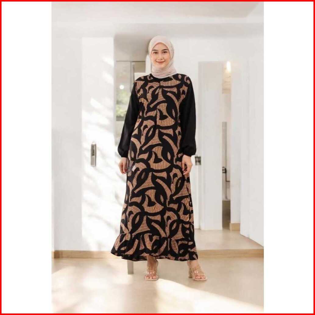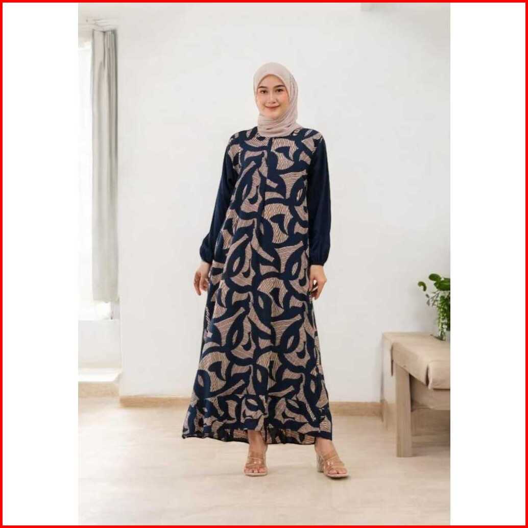 Daster Kekinian Jumbo Dress Rayon Rempel Busui Lengan Panjang Homedress Batik
