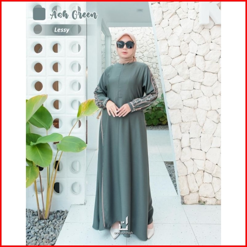 Dress Lessy Abaya Bordir Annasihah Original Terbaru Dan Syari Set Yoris Ayisna Ootd Gamis
