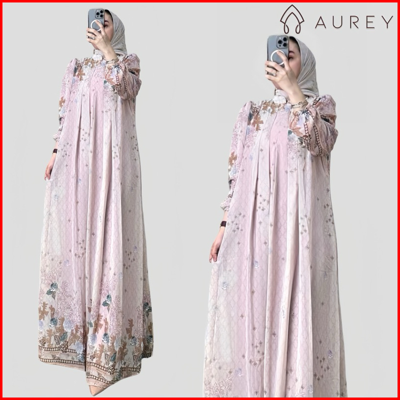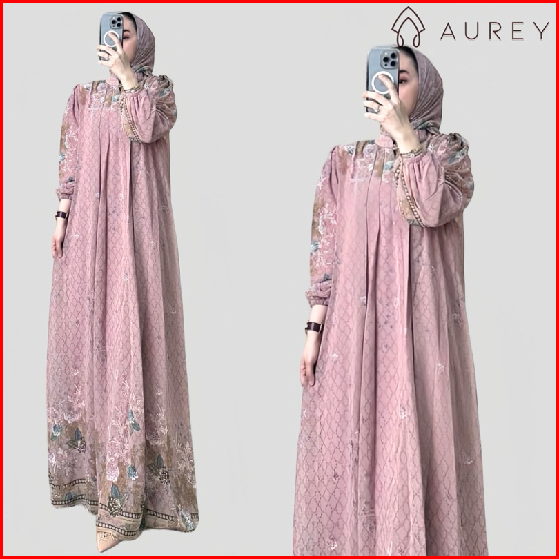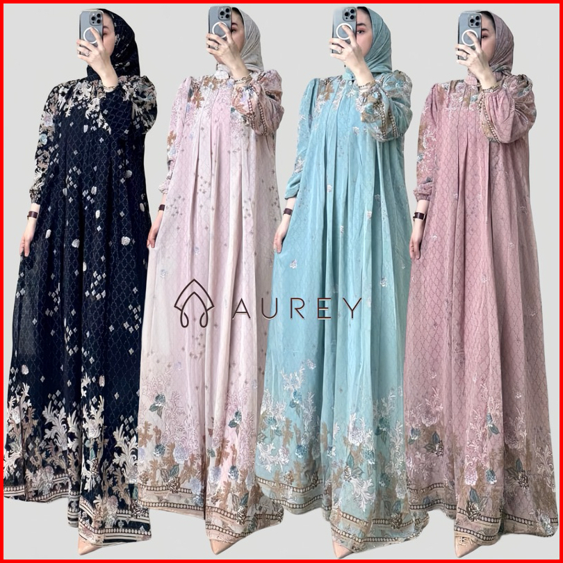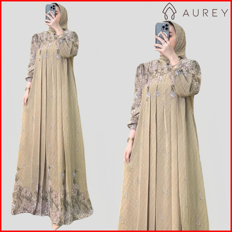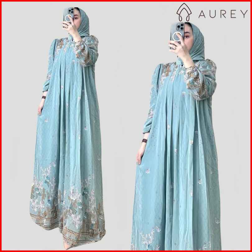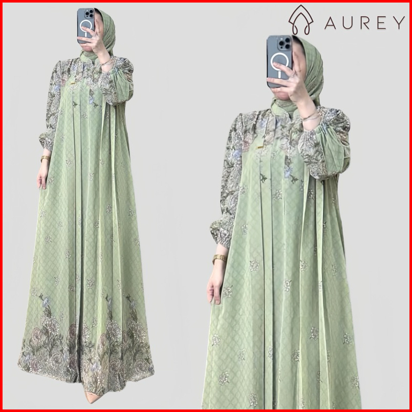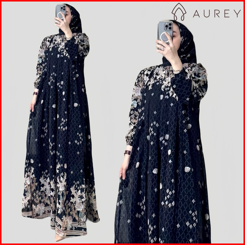 Aurey - Set Hijab Segiempat Gamis Arsyila Wanita Premium Setelan Hijab Setelan Kerudung Gamis Wanita Dress Ceruty Busui