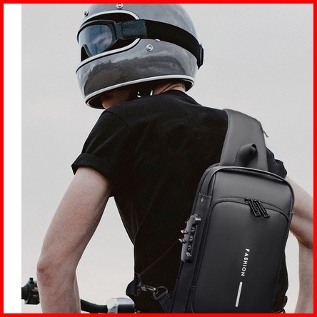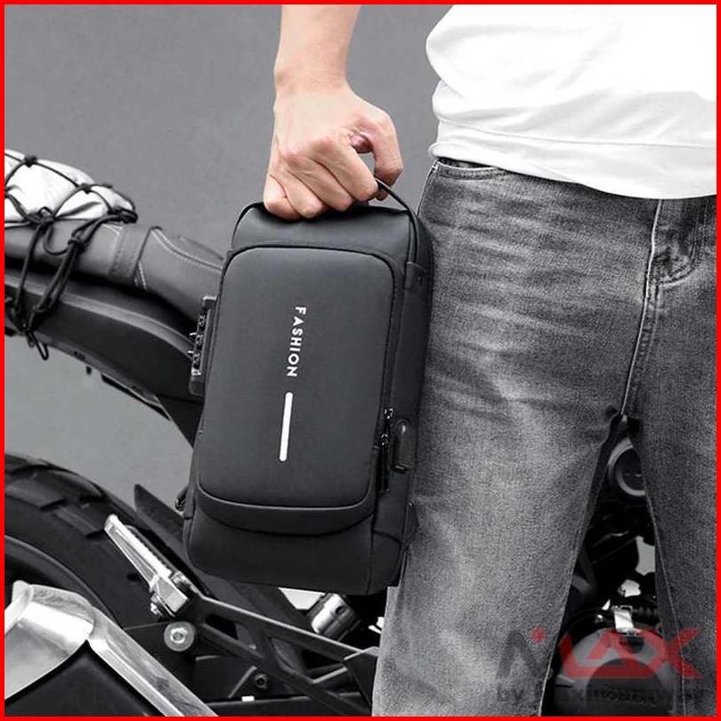 Tas Selempang Pria Wanita Ideal Untuk Bikers Pengendara Motor Dengan Usb Charger Dan Gembok