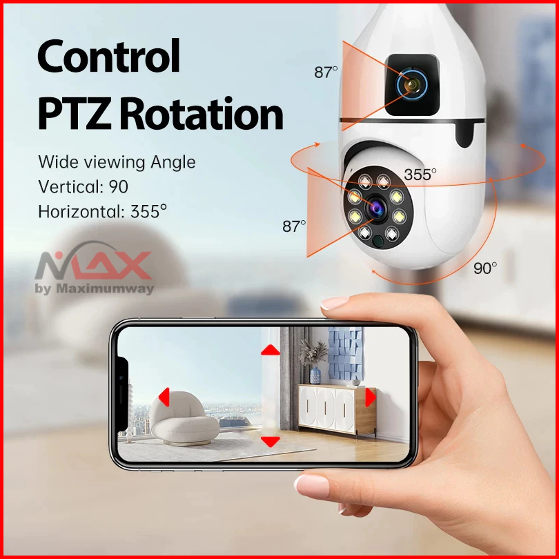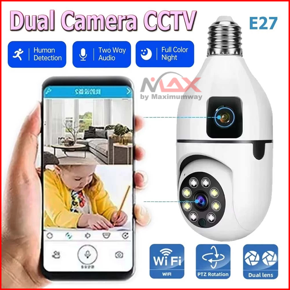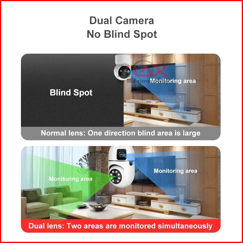 Cctv 4mp Dual Camera Ptz Wifi Ip Kamera Keamanan Night Vision Two Way Audio Rotates 360 Internet
