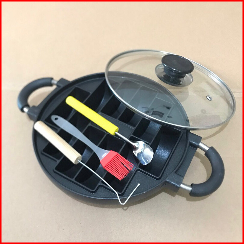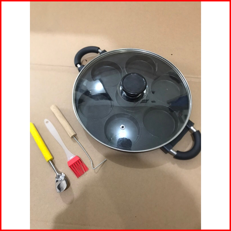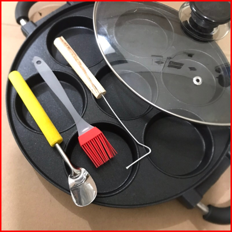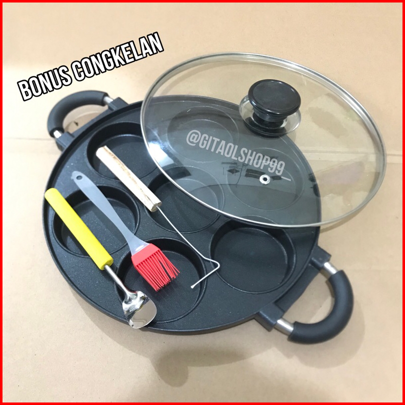 Cetakan Kue Apem Martabak Mini 7 Lubang Happy Call Bahan Teflon Anti Lengket Tutup Kaca Cake Pan