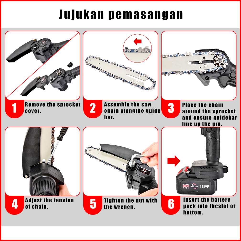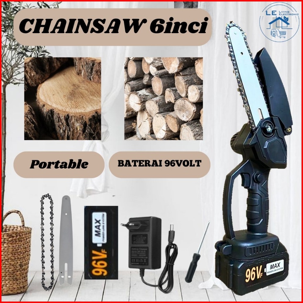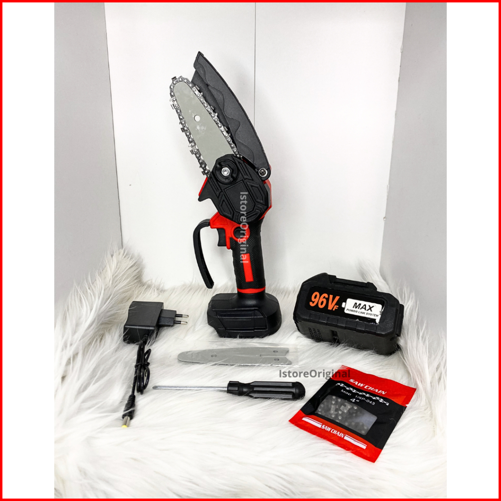 Mesin Gergaji Rantai Portable 4 Inch Baterai 96vf Alat Perkakas Tukang Gergaji Set Lengkap